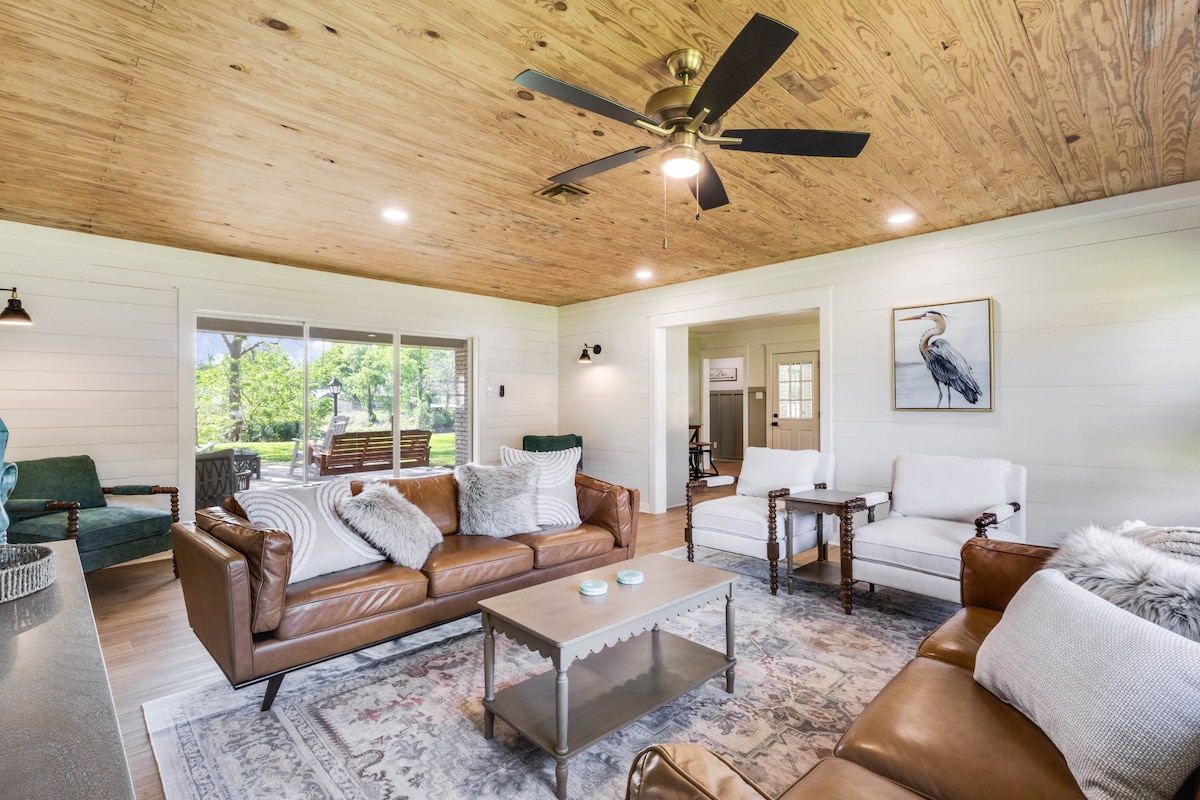 Escape to this stunning luxury home on the Vermilion River in Milton, just minutes from Youngsville. Enjoy river views from the open living & kitchen areas, all designed with a bright, airy feel. Unwind on the back patio with a hammock, swing, chairs, fire pit, and BBQ grill. Each Bedroom & living area has a TV. Fast WiFi makes it perfect for streaming or remote work. Peace, comfort, and style await! Place sleeps 8 with 3 beds, two single cots. It could sleep up to 10 counting the two couches.