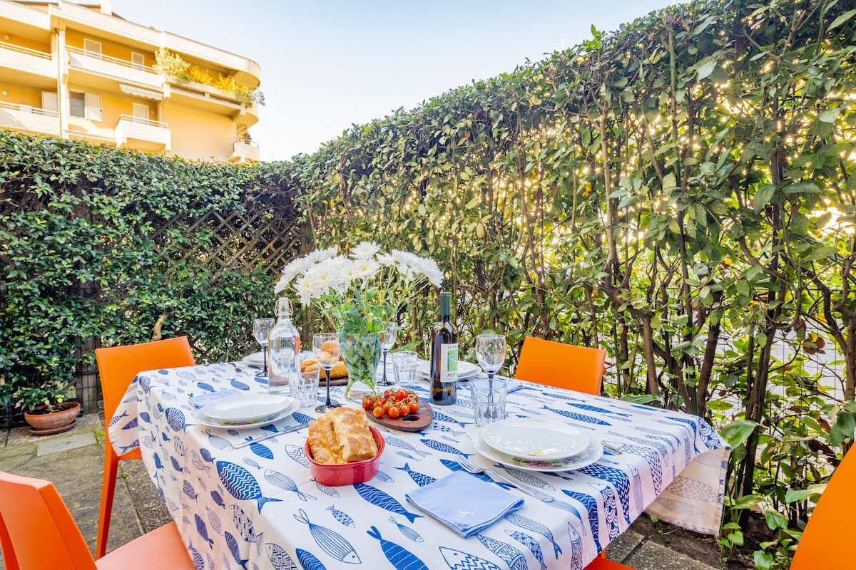 Este grande apartamento está localizado em uma área residencial tranquila perto da floresta de pinheiros. Equipado com todos os confortos, incluindo Ar Condicionado/Aquecimento, máquina de lavar louça, máquina de lavar roupa, SmartTV (Netflix, Amazon, Disney), WI-FI e bicicletas para os hóspedes com os quais você pode alcançar em poucos minutos a praia, o porto e o famoso Promenade chamado "Passeggiata Margherita". Recentemente renovado em um ambiente relaxante e acolhedor, oferece um ambiente único, localização ideal para famílias, casais ou amigos!