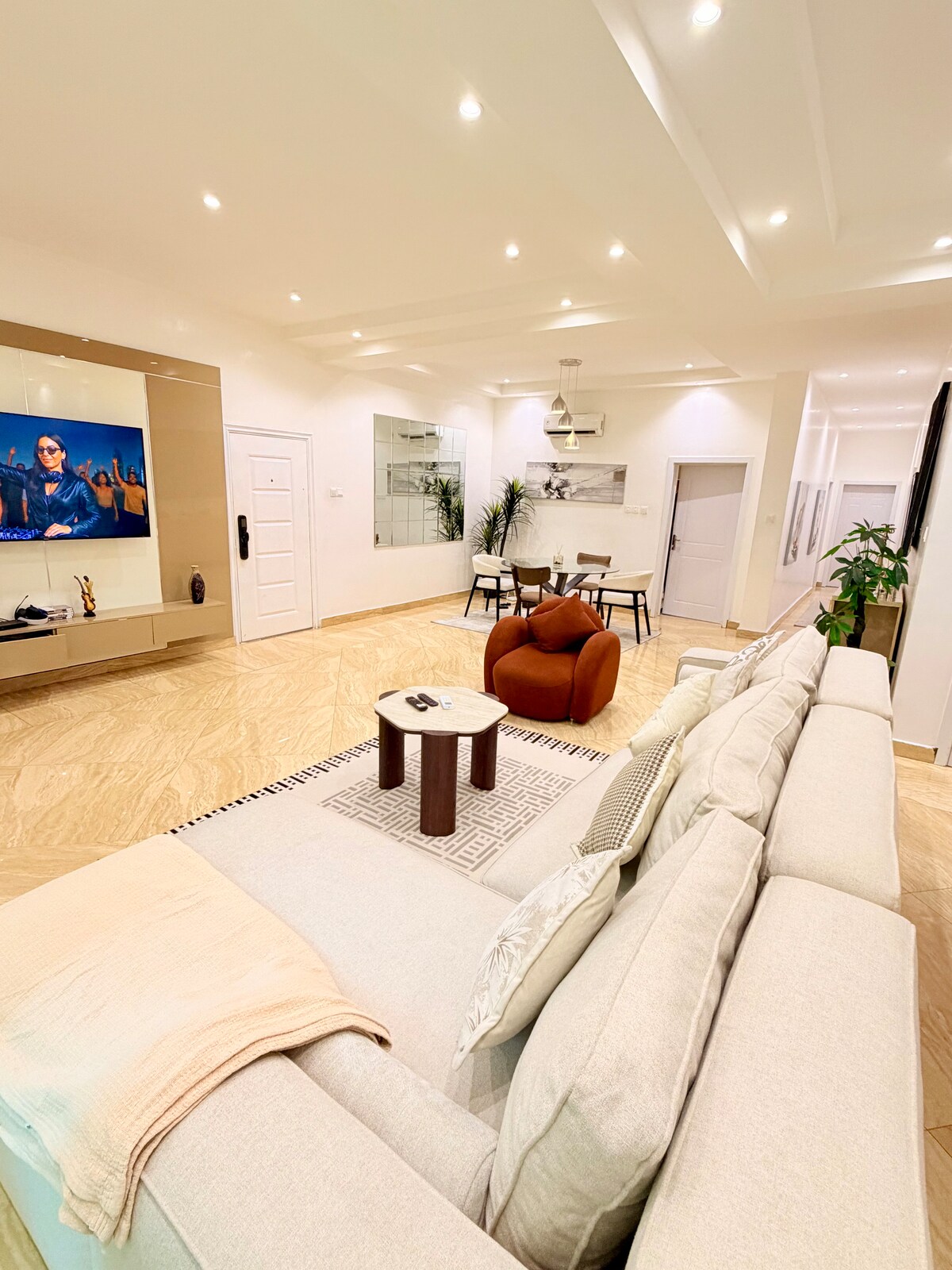 " Beautifully furnished 2 bedroom apartment located in a gated and secured environment within Lekki. Equipped with smart tvs (Alexa, Netflix and amazon prime), unlimited internet, 24 hrs power supply/Solar, DSTV premium, Ring video bell, fully air conditioned, water heaters, card/board games, parking space, fully equipped kitchen with microwave, refrigerator and kitchen utensils, washing machine, house keeper and/or in chef on request". We are here to give you a home away from home experience