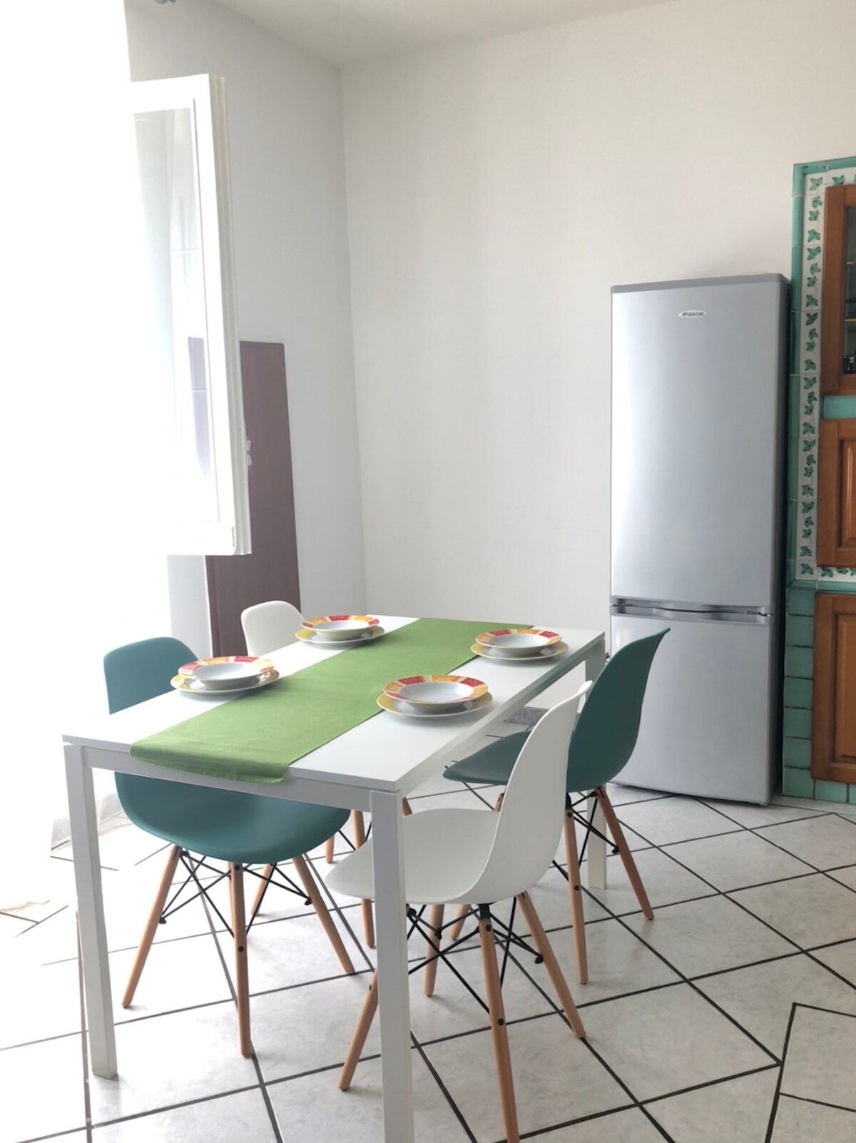 Appartamento accogliente,dotato di ampia cucina in muratura , graziosa zona soggiorno con divano; 2 camere da letto matrimoniale e divano,bagno con vasca e lavatrice. L'alloggio può ospitare fino a 5 persone. Aria condizionata.L'appartamento si trova a pochi passi dal centro storico e dalla spiaggia.Nei dintorni sono presenti: supermarket, pescheria, salumeria, panificio,bar e tabacchi.Fermate autobus a 5 minuti a piedi.