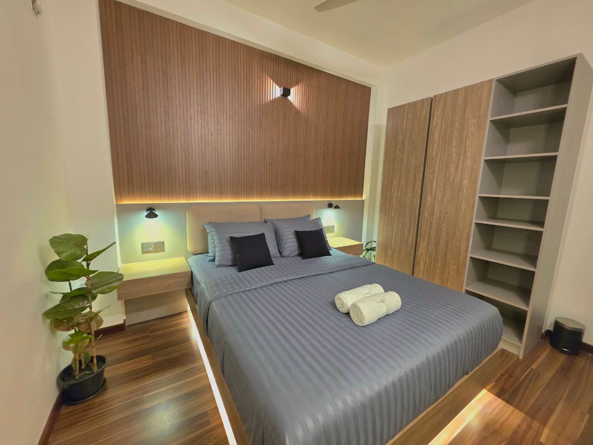Bem-vindo ao nosso encantador apartamento de 1 quarto em Hulhumale'—ideal para casais e viajantes solitários. A apenas 15 minutos do aeroporto, oferece uma cozinha totalmente equipada, café e chá. Desfrute do nascer do sol dourado e das praias de areia a apenas um minuto de distância. Localizado em uma área tranquila, mas perto de restaurantes e lojas locais. No interior, você encontrará uma cama queen size aconchegante, iluminação ambiente e um banheiro bem equipado. Perfeito para estadias curtas e prolongadas. Estamos ansiosos para hospedar você!