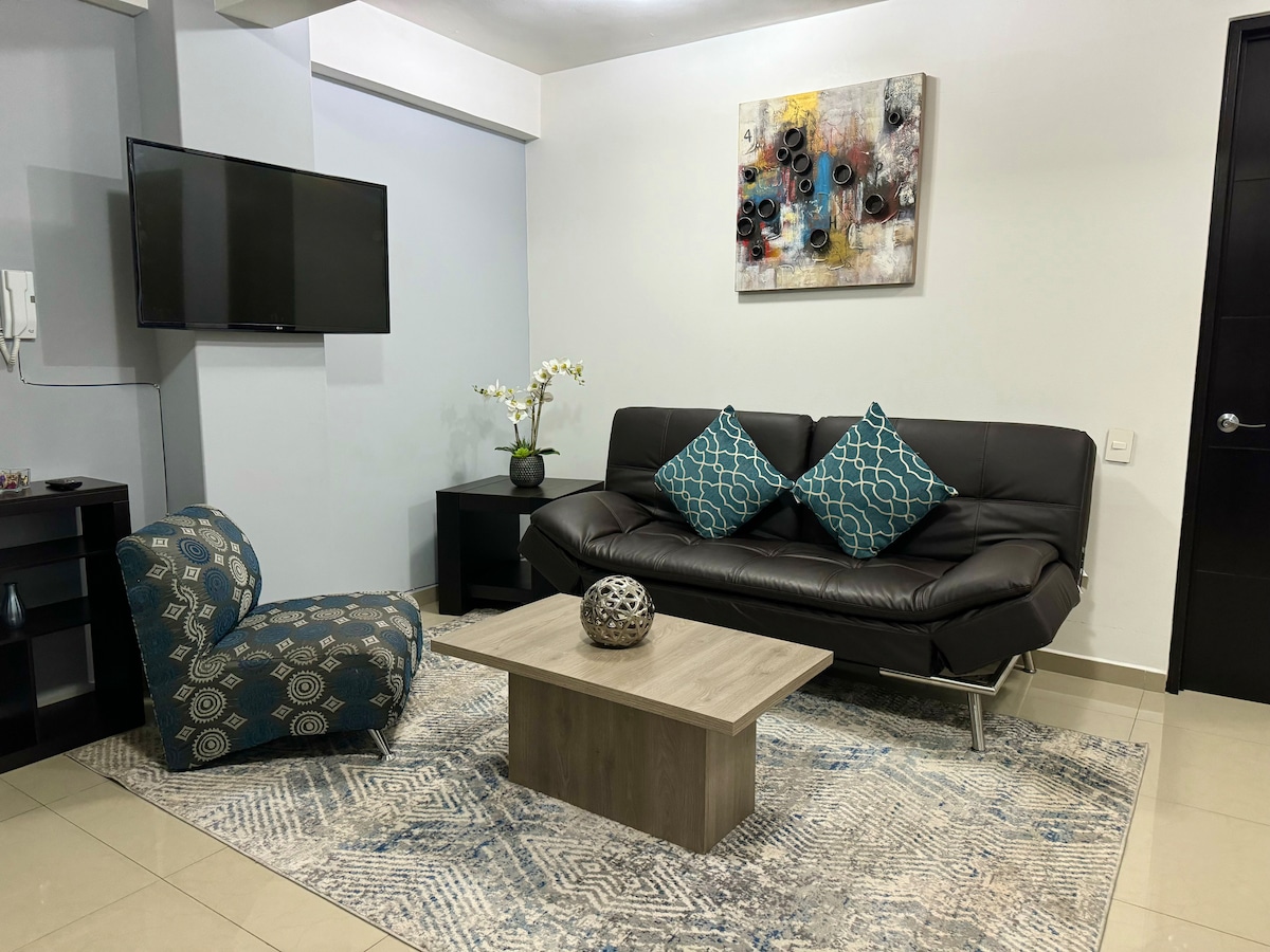 Apartamento moderno recém remodelado "adequado para animais de estimação" localizado dentro de uma área residencial com comodidades de luxo e uma equipe que garantirá que sua estadia em Capitalia seja segura, confortável, relaxada e inesquecível. Nossas comodidades foram renovadas e melhoradas para o conforto dos nossos hóspedes, você pode desfrutar da nossa academia, área de leitura, salas de reunião, área de trabalho, sala de trabalho, salão de eventos, campo de futebol, máquina de venda automática, estacionamento, terraço com churrasqueira, jardim com área de lazer para crianças.