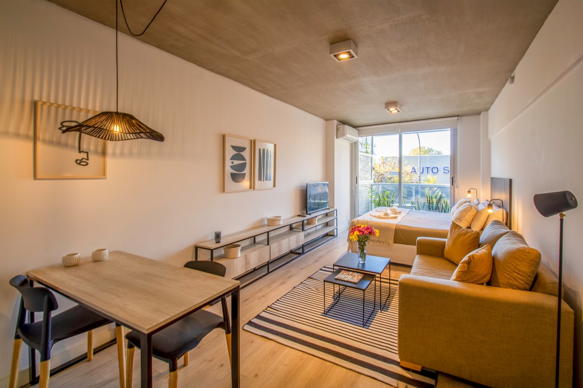 This is a wide and stylish apartment suitable for 4 guest in a brand-new building in Palermo Hollywood, considered one of the trendiest hot spots of Buenos Aires. It is superbly located at just one block away from Santa Fe Street and around the corner from “Distrito Arcos Shopping Mall” with several restaurants, coffee shops, design shops and night clubs near the area. Very comfortable option with a great location!