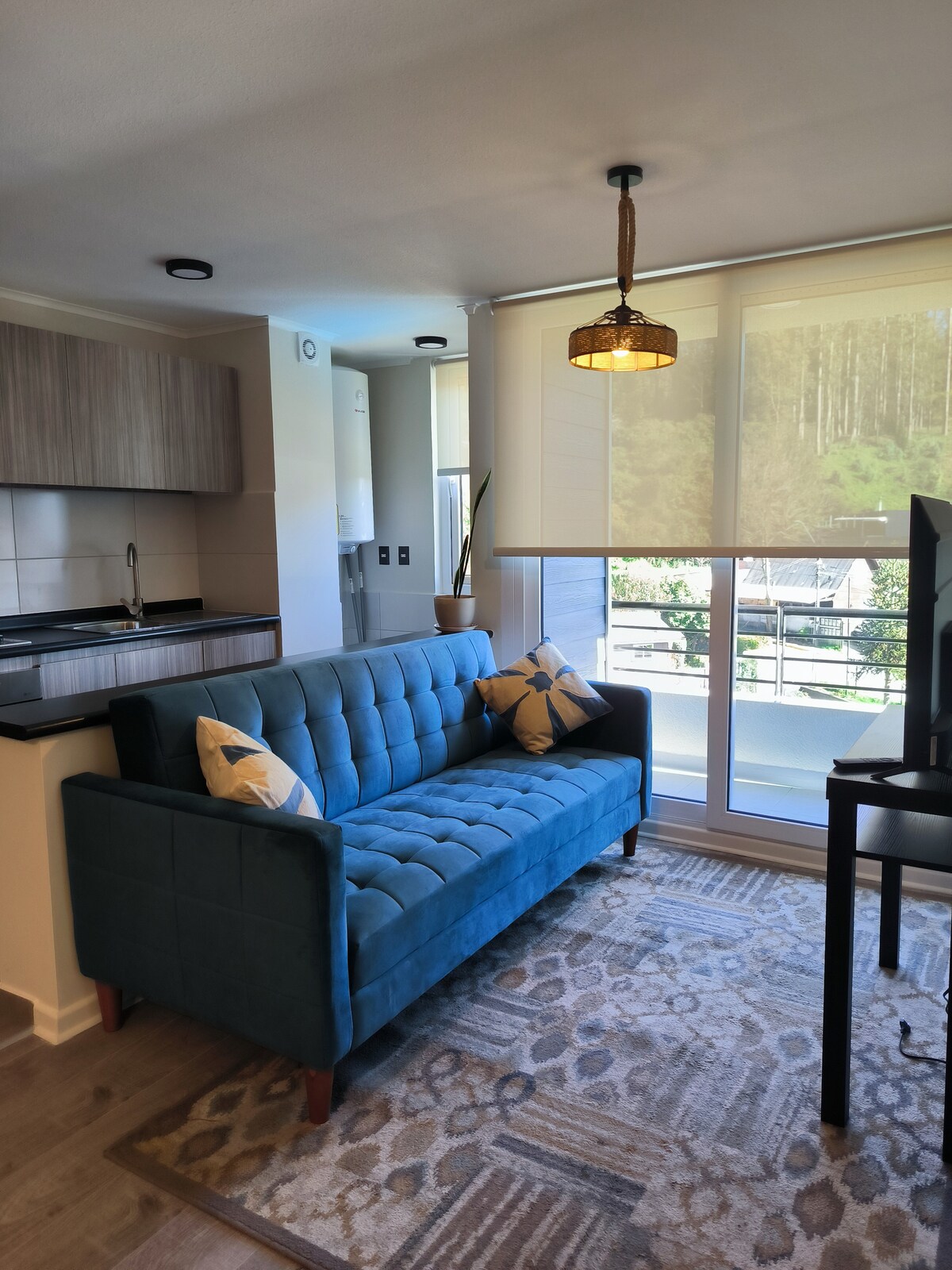 Apartamento totalmente equipado, iluminado e aconchegante, ambiente muito tranquilo, a poucos quarteirões do centro de Pucón. Acesso rápido ao lago, centro da cidade e estradas que se conectam com todas as atrações turísticas da região. Você pode caminhar (10 minutos) até o centro da cidade sem a necessidade do carro. Quarto em suíte, janelas termopanel. estacionamento privado. Muito bem equipado para uma estadia confortável, cozinha completa, Wi-Fi de fibra óptica, academia, piscina (período de verão).