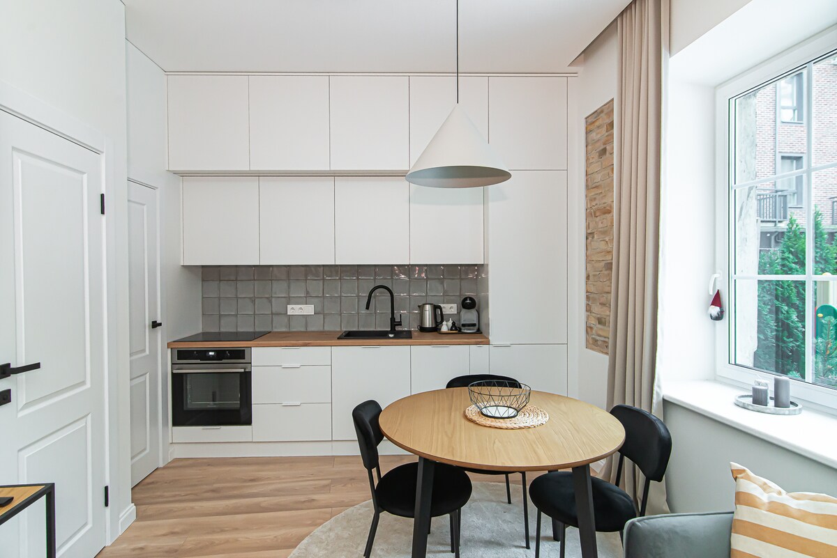 Desfrute deste estúdio único e elegante a poucos passos do coração da Cidade Velha de Vilnius. Rodeado por cafés encantadores, bares acolhedores, um mercado de alimentos interior e um parque com uma excelente vista sobre Vilnius, este estúdio de 38 metros quadrados inclui uma cozinha totalmente equipada, WIFI de alta velocidade (500MB/s), uma TV com Netflix e uma confortável cama de casal. Localizado em um edifício histórico de 120 anos, a apenas quatro paradas de ônibus do Aeroporto de Vilnius e a 10 minutos a pé da estação de trem/ônibus.