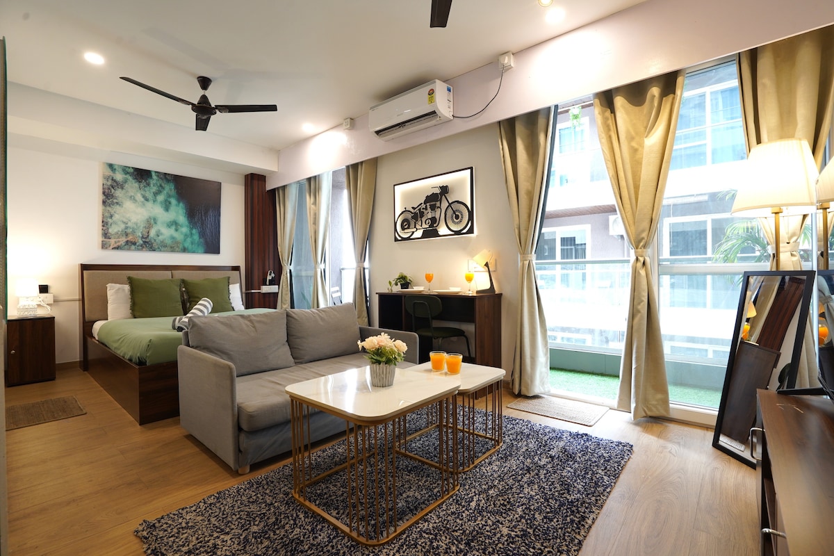 ✨ Estúdio cuidadosamente projetado perto do Aeroporto de Pune — conforto, calma e conveniência em uma estadia. 🌿 Desfrute de interiores acolhedores, Wi-Fi rápido, ar condicionado, smart TV e uma varanda perfeita para o café da manhã. Cozinha leve na cozinha e self check-in para facilitar. Ideal para viajantes de negócios ou casais que buscam tranquilidade e privacidade. Proibido animais de estimação, álcool ou festas; fumar apenas na varanda. Seu retiro tranquilo na cidade espera por você. 🌸 🌿 Descontos especiais para estadias mais longas: 12% de desconto em reservas semanais e 22% de desconto em reservas mensais.