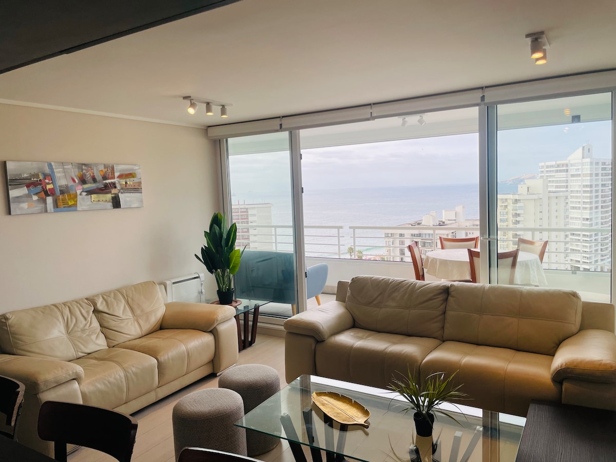 Bem-vindo ao nosso espaço lindamente equipado em frente ao mar, com estacionamento privativo. Ele está localizado a poucos passos da praia de Cochoa, e você pode caminhar ao longo da borda costeira deixando o edifício a 5 minutos de Reñaca. Uma decoração elegante e um espaço 100% equipado, para ter todos os confortos em um só lugar. Tudo projetado para tornar sua estadia uma excelente experiência. Você estará perto de supermercados, restaurantes, farmácias, bares, transporte público, tudo a pé.
