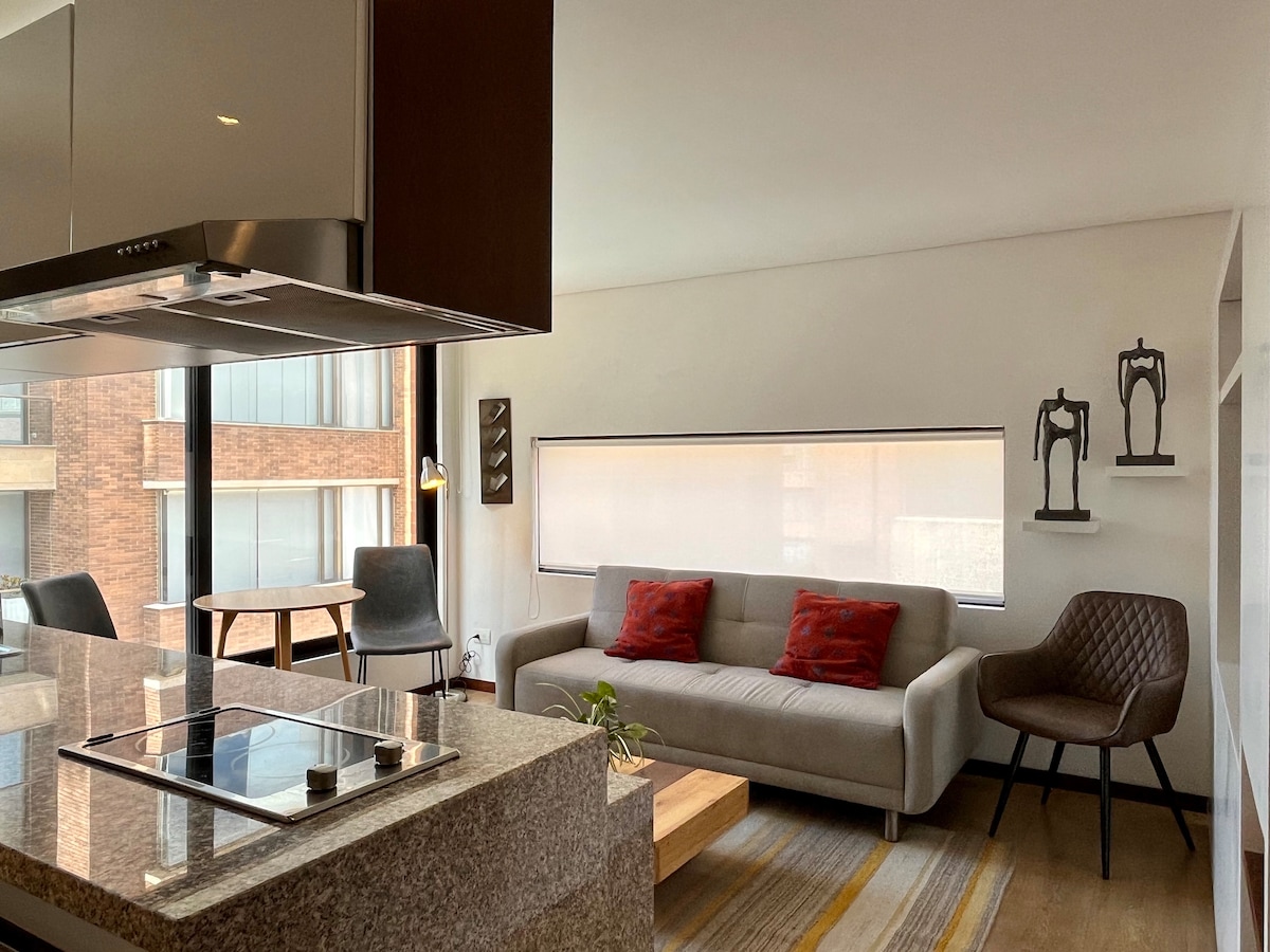 Apartamento con excelente ubicación, en un edificio moderno. El apartamento está ubicado en una de las zonas más apetecidas por los turistas, a pocos minutos caminando de la Zona T donde se encuentran los mejores restaurantes de la ciudad, centros comerciales, parques y clínicas. El apartamento es muy acogedor, está completamente amoblado, cocina equipada, cuenta con conexión gratuita a Internet Wi-Fi agua caliente, servicio de vigilancia las 24h y parqueadero en el edificio gratis.