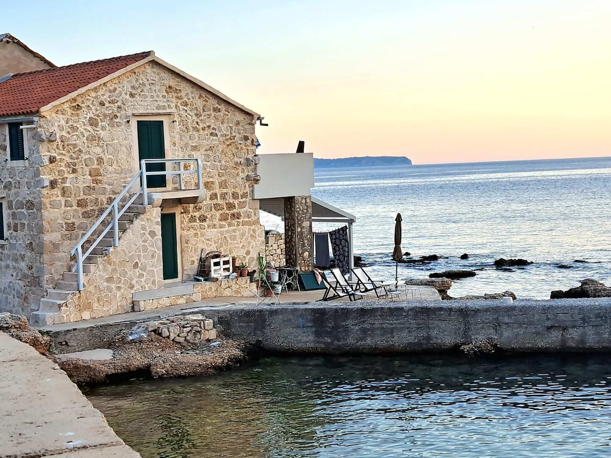 The apartment in house is located right by the sea in a beautiful sandy bay Stoncica, 7 km from the town of Vis. It is in the shade of a pine forest in a very quiet and relaxing place, surrounded by nature. It has its own small bridge from which you can jump directly from your bed and refresh yourself in the crystal blue sea. The house can be reached by foot down a stony path and the distance from the parking area is approximately 500m. Before booking please check if the place suits your nature.