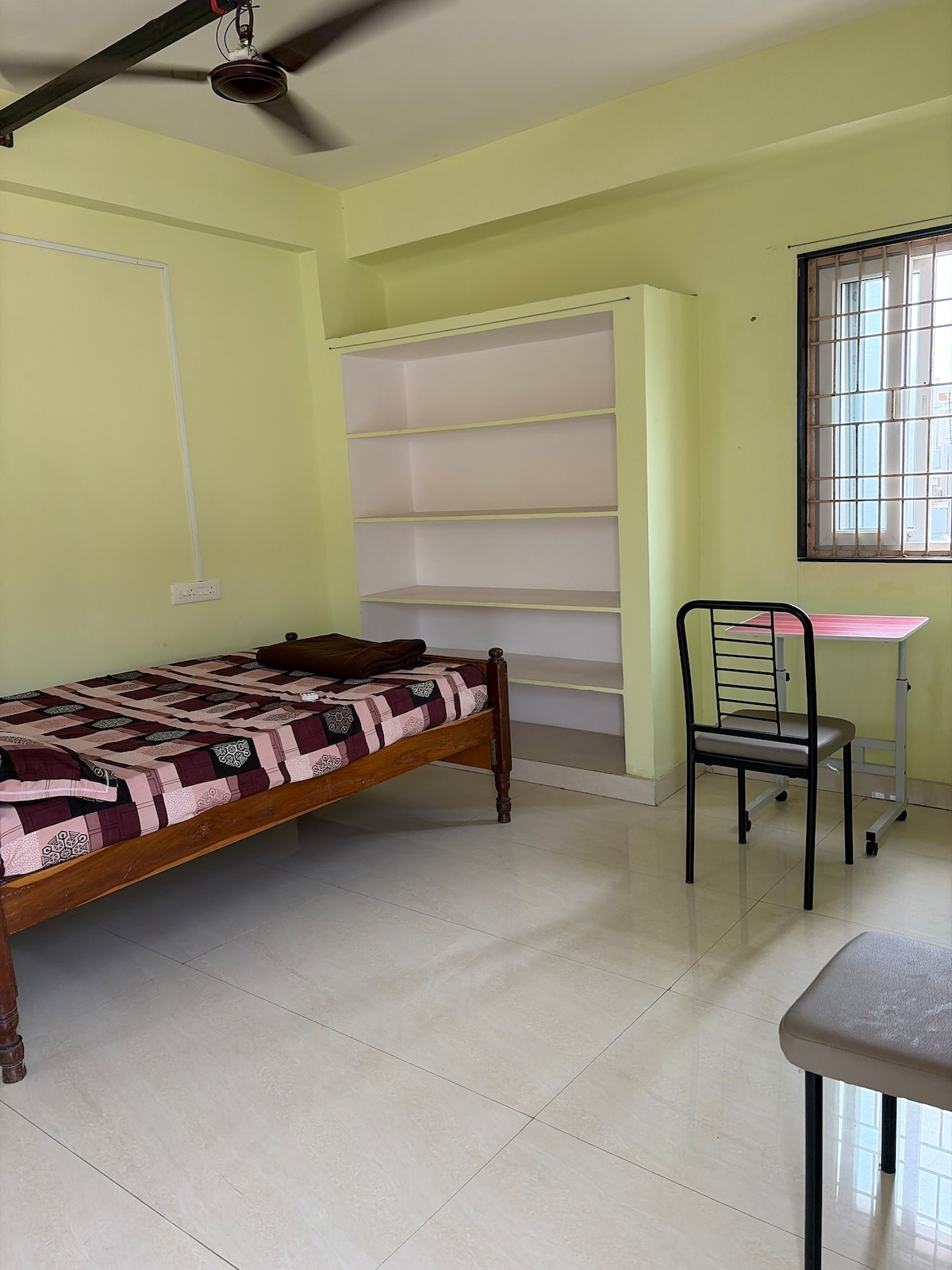 Relaxe com toda a família neste lugar tranquilo para ficar. O lugar tem 5 quartos com banheiro (3 quartos com ar condicionado e 1 quarto sem ar condicionado) com uma sala de estar compartilhada, cozinha e varanda. É uma casa residencial, então não há opção para festas noturnas ou música alta. Fica no primeiro andar, apenas escadas estão disponíveis. A família do proprietário vive no térreo, e câmeras de CCTV estão equipadas do lado de fora. No último quarto, há um inquilino de longa duração que fica. Por favor, não perturbe essa pessoa, ela usará espaços compartilhados.