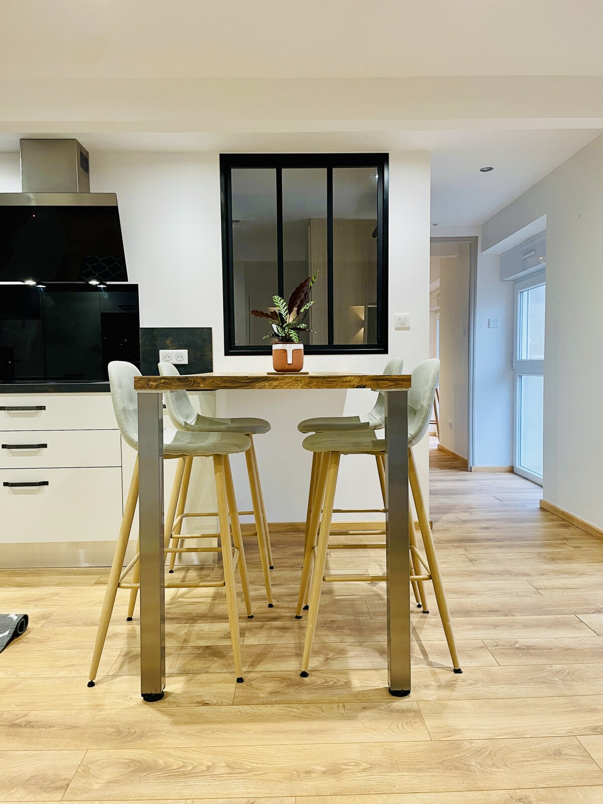 Apartamento T2 muito bonito de 50 m2 no coração de Vittel. Muito perto de restaurantes, padarias e outras lojas. A 400 metros do parque termal e das termas. Totalmente reformado, você tem todo o conforto moderno durante a sua estadia. O apartamento tem uma cozinha totalmente equipada com ilha central aberta para a sala de estar. Um quarto com cama de 160*200, banheiro com chuveiro italiano. A 2 passos da estação de trem, estacionamento fácil.