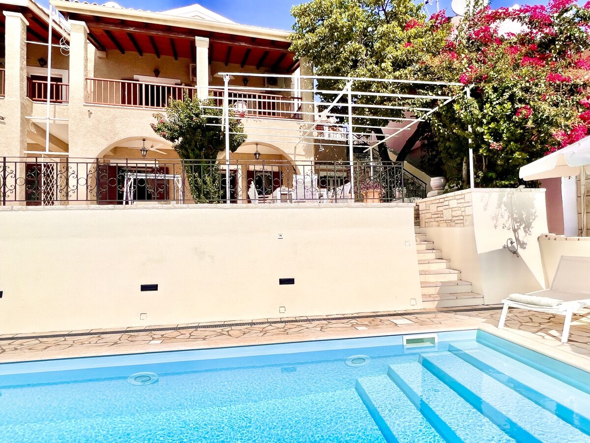 Mais de 80 ★★★★★ avaliações Villa Genna, uma bela vila com piscina e vistas incríveis acima das enseadas pitorescas de Kalami e Kouloura. Lugar agradável e repousante em uma parte muito exclusiva do NE Corfu. Vistas incríveis de todas as partes da vila ☙ Piscina aquecida Localização ☙ privilegiada - a 2 km da praia de Durrells Kalami Casa ☙ bem equipada com Wi-Fi rápido Layout ☙ familiar e piscina fechada. Distâncias ☙ convenientes dos melhores locais