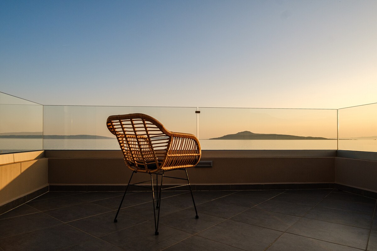 Situado logo acima do mar, o sótão se abre naturalmente para a varanda e a vista aberta da rocha de Monemvasia. Materiais leves e naturais e um layout aberto formam um espaço calmo e natural, onde o tempo desacelera e a fronteira entre o interior e o exterior parece fluir sem esforço. É um lugar para estadias tranquilas e dias fáceis, com noites que parecem tão confortáveis quanto dentro de casa, sempre conectadas ao mar além.