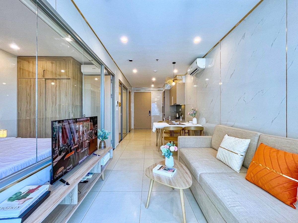 Um apartamento estúdio moderno e bem equipado a poucos minutos a pé de Back Beach (Bai Sau). A uma curta distância a pé do Lotte Mart, farmácia, mercado local e loja de conveniência. O apartamento é perfeito para uma família de 4 pessoas com um quarto com cama extra, cozinha, sala de estar enorme, chuveiro confortável, geladeira, mesa de jantar, mesa de trabalho, armário e enorme TV Wifi com Youtube.