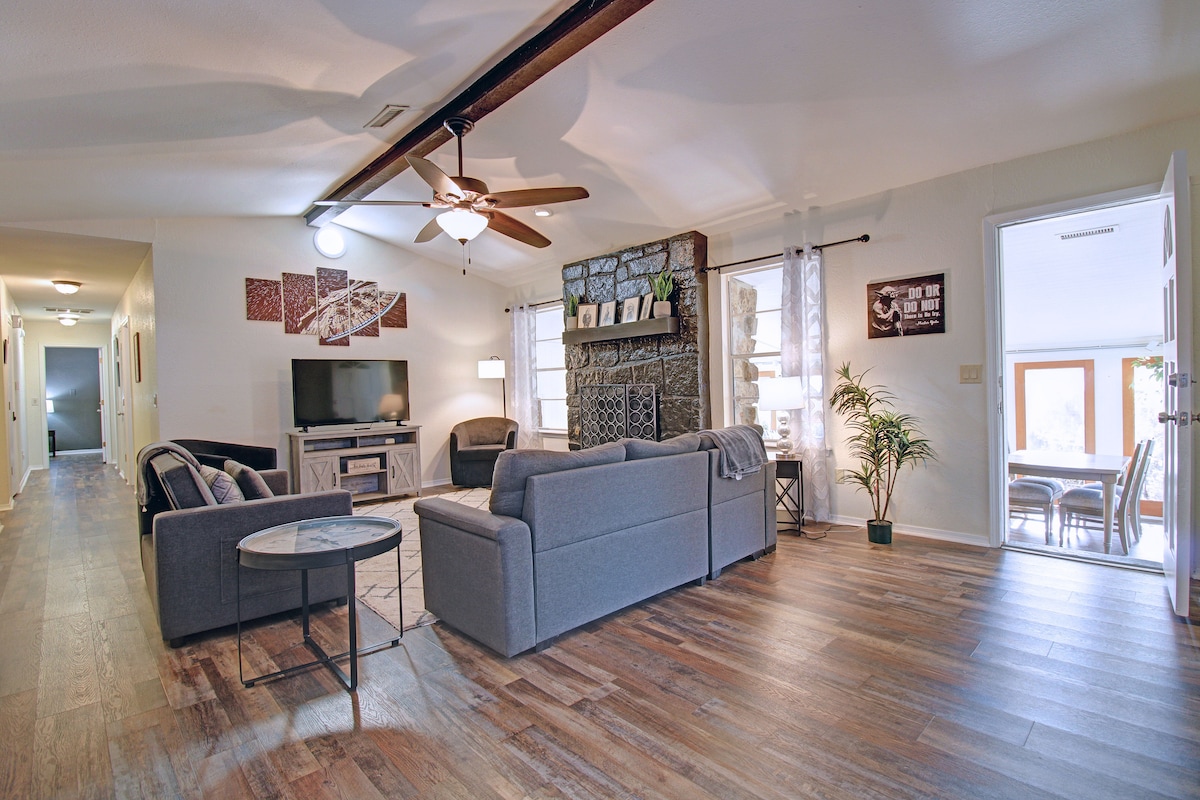 Reconecte-se e celebre no Creekside Gathering Spot + Event Retreat. Perfeita para reuniões, casamentos, chás de bebê e viagens em grupo, esta casa espaçosa tem uma cozinha profissional, mesa de bilhar, mirante no terceiro andar e um espaço para eventos separado para até 50 hóspedes (taxa de evento aplicável). Lá fora, relaxe no oásis privativo ao ar livre — relaxe no deck envolvente, ouça o riacho e mergulhe na paz que torna este lugar inesquecível.