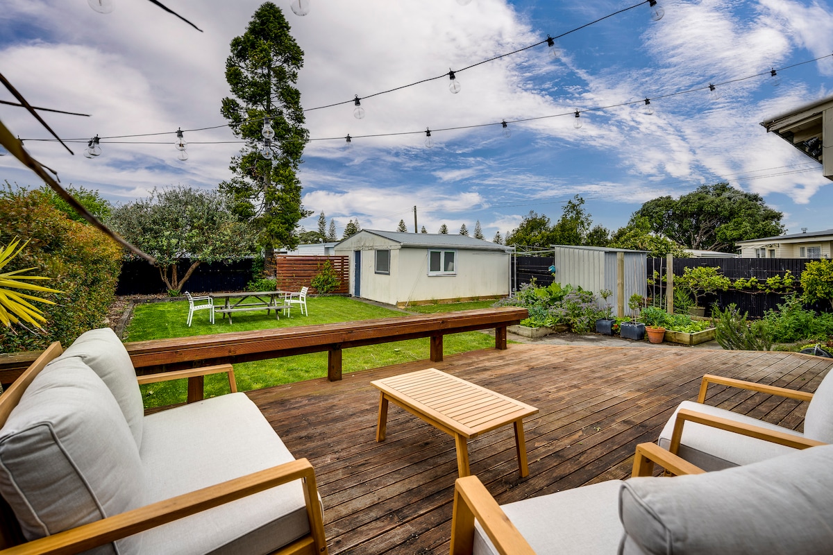 Abrace a simplicidade neste lugar tranquilo e bem-localizado. Perfeito para famílias ou casais que estão procurando um lugar confortável para ficar a uma curta caminhada da praia, piscinas quentes, jardins botânicos, cafés, restaurantes e bares de Ahuriri. Aconchegante durante os meses de inverno com um fogo a gás aquecendo toda a casa, exigindo apenas o clique de um botão e aquecedores de painel nos quartos. Totalmente isolado. Sol o dia todo e um lugar adorável para relaxar à noite no convés.
