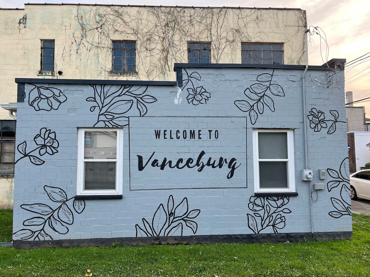 Este edifício histórico recentemente renovado está localizado no coração do centro de Vanceburg. Desfrute de uma bela vista do rio Ohio do outro lado da rua ao lado do Veteran's Memorial Park enquanto aprecia a pitoresca sensação de cidade pequena. Marcos históricos e opções gastronômicas estão a uma curta distância a pé. Oportunidade de foto divertida em frente ao mural "Bem-vindo a Vanceburg" localizado ao lado do Airbnb. Amplo estacionamento e pode fornecer um pacote e cadeira de bebê/cadeira alta mediante solicitação. Não vemos a hora de hospedar você!