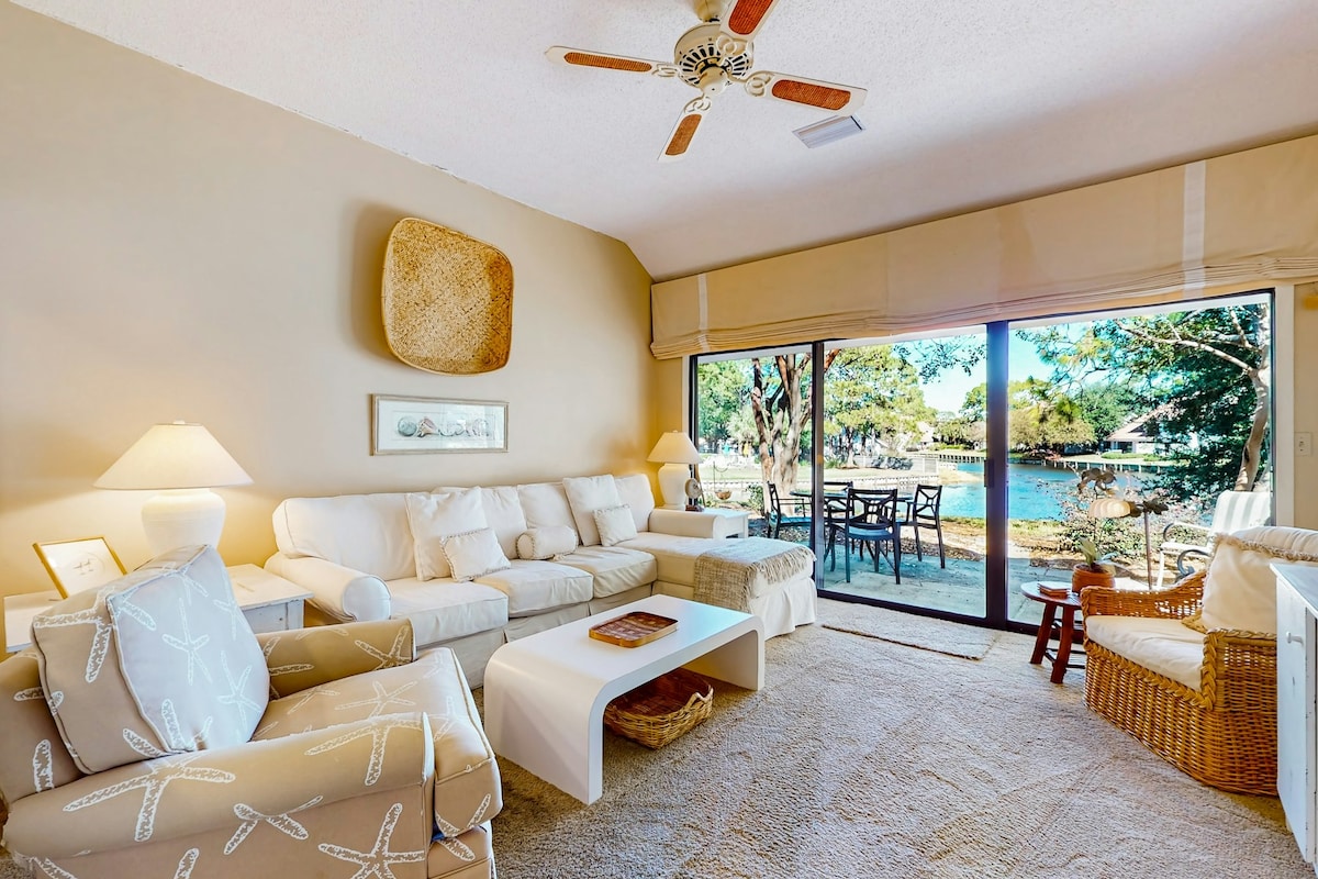 "Salty Sun" é um belo e remodelado apartamento de 2 camas, 2 banheiros no piso principal no coração do Sandestin® Resort! Perto de tudo - carrinho ou caminhada até Baytowne Wharf e Grand Blvd. Cama king no quarto principal, 2 camas de solteiro no quarto de hóspedes (pode converter para cama king mediante solicitação). Completo com uma cozinha completa e máquina de lavar/secar na unidade! POR FAVOR, LEIA NOSSAS AVALIAÇÕES sobre nossas outras propriedades, além das que estão aqui.