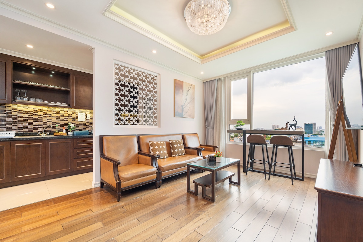 Trate a si mesmo e seus entes queridos e fique nesta espaçosa suíte localizada do outro lado do Palácio da Independência. Desfrute da vista pitoresca da cidade a partir da varanda e da sala de estar bem iluminada. Esta acomodação foi projetada e gerenciada profissionalmente pela Homes By IDG, um Grupo de Hospitalidade que gerencia propriedades de luxo urbanas no Vietnã, Canadá e Grécia. Comece a planejar sua viagem enviando-nos uma mensagem aqui! Não vemos a hora de receber você na Sailing Tower, Distrito 1.