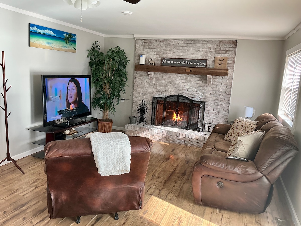 Aproveite sua estadia na área de Newburgh/Evansville com esta casa perfeitamente localizada. Existem 4 quartos (5 camas) e 2 casas de banho. Oferecemos uma cozinha completa, 3 áreas de jantar e sala de estar aconchegante e sala de família completa com lareira de tijolos. Há muito espaço no quintal, então, se você quiser trazer jogos, fique à vontade! {2100sq ft No Stairs!!!} Um andar! Você está a uma curta distância de carro até o lado leste de Evansville e a uma viagem ainda mais rápida até a adorável passarela à beira do rio de Newburgh, com lojas e restaurantes. Gas Grill