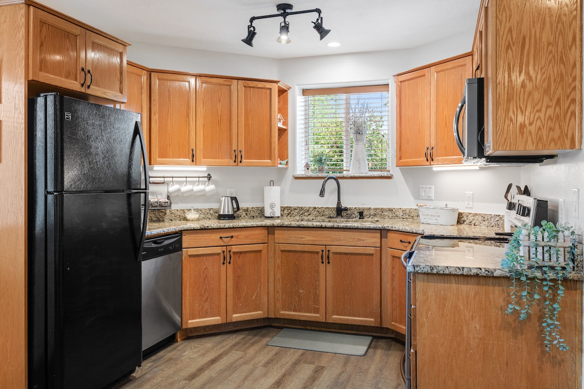 Relaxe na banheira de hidromassagem com vistas deslumbrantes para as montanhas neste apartamento recém-concluído no subsolo com entrada privativa. Dois quartos: um quarto principal com uma cama king size confortável e um quarto divertido com um beliche com uma cama de solteiro em cima de uma cama queen size (roupa de cama de alta qualidade!). Smart TVs em ambos os quartos + sala de estar. Layout aberto e espaçoso com cozinha totalmente abastecida, banheiro completo + pia dupla. Jogos e livros inclusos — ótima opção para famílias, amigos ou casais. Perto de Zion, Bryce Canyon, Grand Canyon, Water Canyon e Coral Pink Sand Dunes.