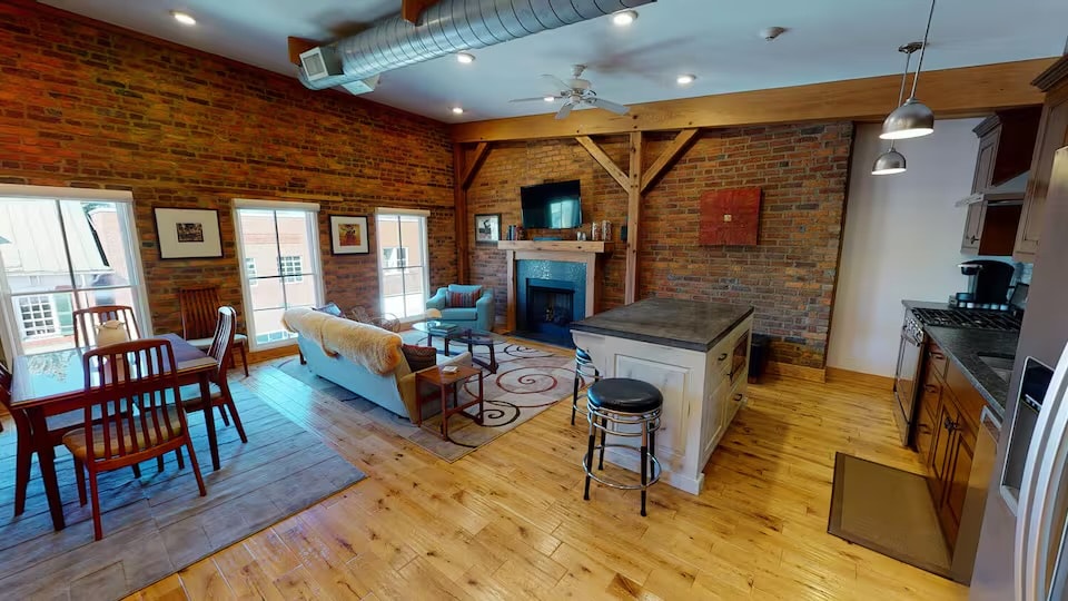 Edifício histórico recentemente renovado e modernizado com muitas comodidades, este loft luxuoso apresenta pé direito alto, tijolos expostos e cozinha de Chef. Decorado com móveis modernos escandinavos originais de meados do século. Suíte master encantadora e aconchegante com cama Murphy adicional na área de loft aberto. Suba as escadas ou use o elevador recém-instalado. Localizado no coração de Abingdon, a uma curta caminhada de restaurantes, bares, o mundialmente famoso Barter Theater e The Virginia Creeper Trail.