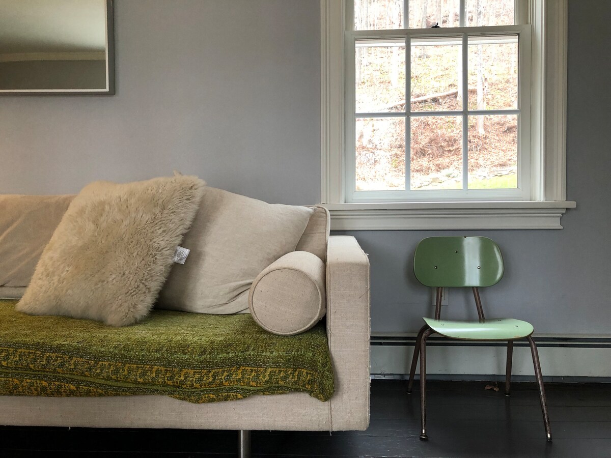 Sinta-se como se estivesse em seu próprio apartamento estúdio no espaçoso e luminoso andar inferior da nossa casa! Caminhe até sua própria área de descanso/jantar. Os hóspedes têm sua própria entrada e vagas de estacionamento separadas. Aproveite a serenidade do parque estadual de Camp Columbia, pois é o nosso quintal estendido. Dica: o pôr do sol é lindo! 2 horas de Nova York, 30-45 minutos para esquiar local e apenas 10 minutos para Washington Depot. Fizemos algumas atualizações recentemente em resposta ao feedback dos hóspedes!