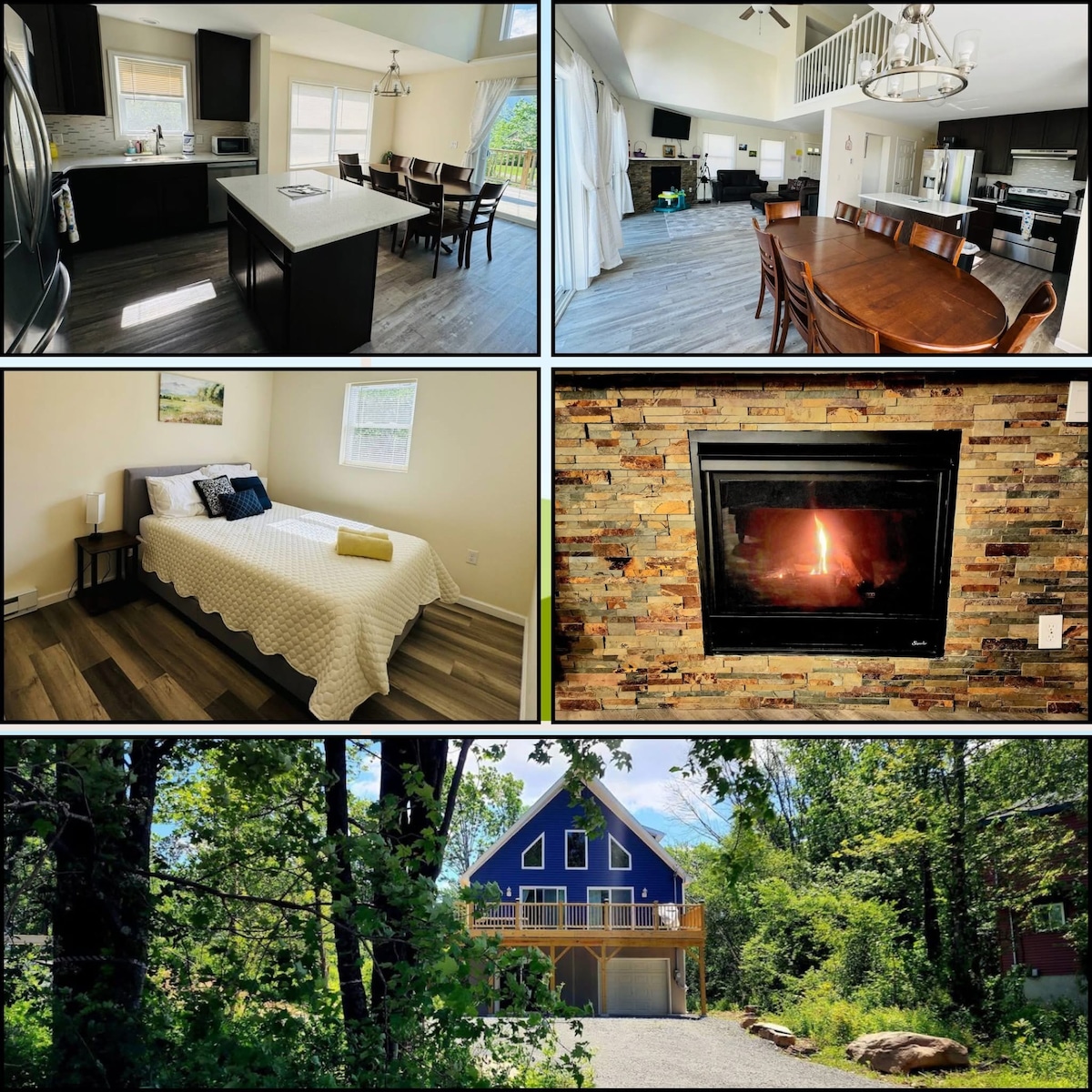 Recém-renovado 2 quarto/1 casa de banho que acomoda 4. A cozinha está totalmente equipada, incluindo forno, gama, geladeira, micro-ondas, cafeteira/kcups e torradeira. A cabana fica em um terreno de 50 acres com uma fogueira e assentos adirondack perfeitos para uma noite de smores. O Lago Wallenpaupack fica a 2 minutos a pé da casa de campo. A Comunidade tem direitos de lago, com sua própria praia privada e acesso ao lago, que os hóspedes serão bem-vindos a usar. Restaurantes, estâncias de esqui e aluguel de barcos perto.