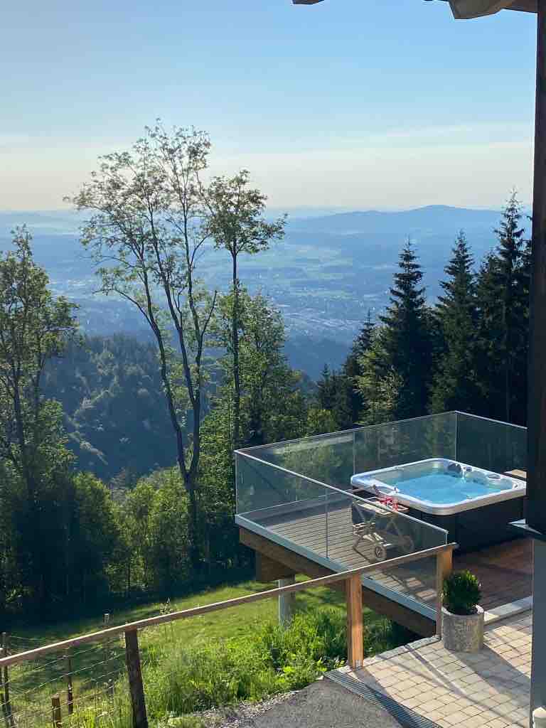 Desfrute de prazeres de spa com uma excelente vista de Graz e da região alpina sudeste. Oferecemos privacidade absoluta e uma arquitetura projetada com muito amor pelos detalhes que lhe garantirão uma estadia inesquecível. Nosso chalé é a alternativa perfeita para hotéis de spa tradicionais. A empresa familiar está ansiosa para recebê-los como nossos hóspedes. Todas as nossas instalações (piscina, banheira de hidromassagem, sauna, academia) são 100% privativas e só para você.