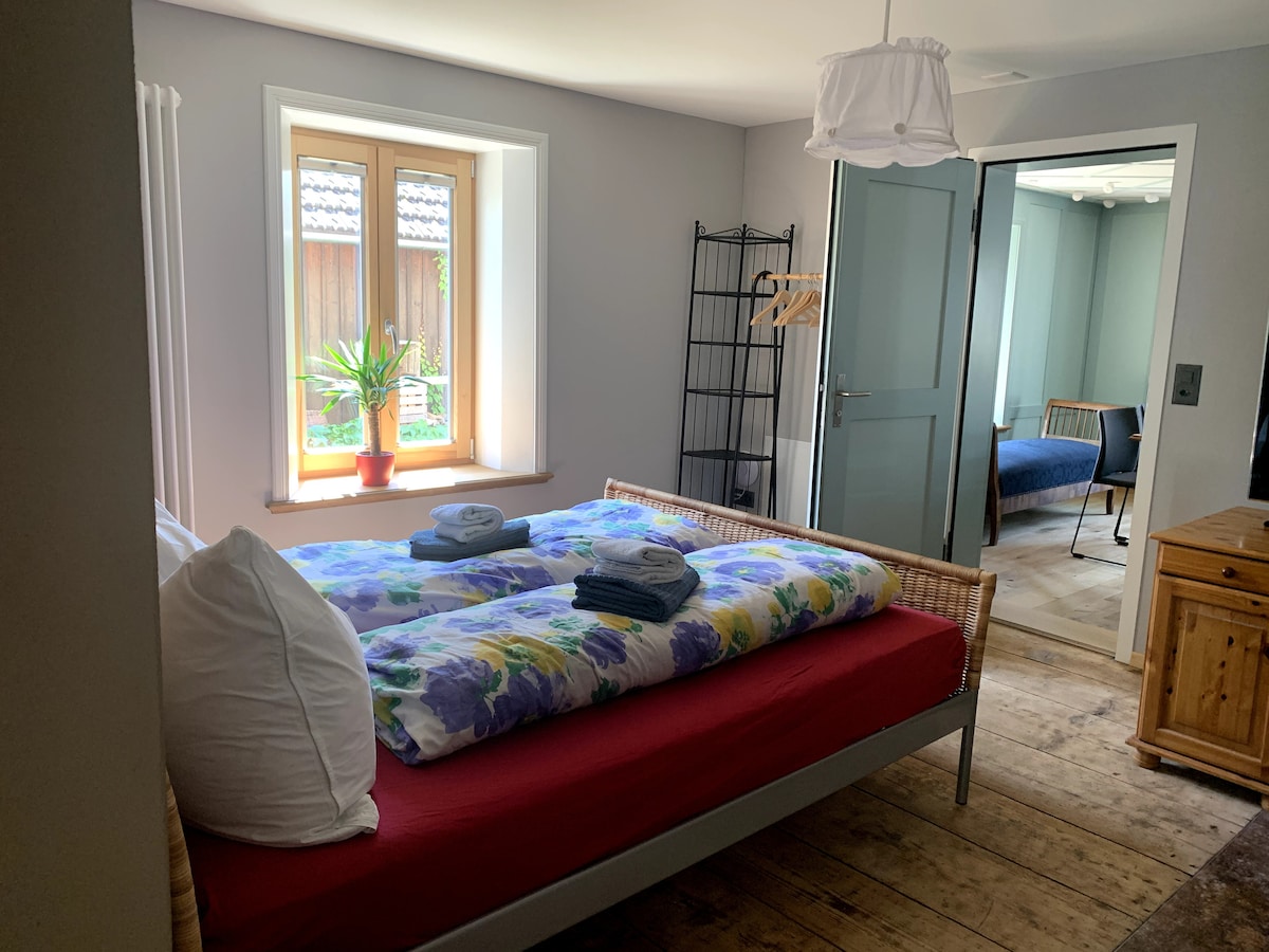 Bem-vindo ao nosso apartamento carinhosamente mobiliado no piso térreo de uma encantadora casa de enxaimel – o lugar perfeito para relaxamento e experiências na natureza! 🏞 Ideal para: Caminhantes, ciclistas e amantes da natureza – trilhas fantásticas pela natureza começam logo na porta da frente. 📍 Localização: No centro da aldeia de Altnau, tranquila e rural. O Lago de Constança, as lojas e a parada de transporte público estão a uma curta distância a pé.
