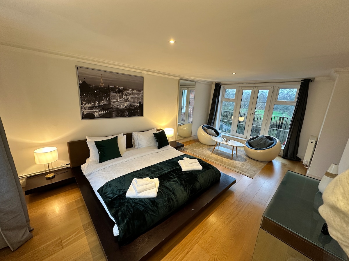 Desfrute de uma experiência elegante e tranquila neste apartamento imaculado com uma varanda privativa com vista panorâmica de Londres. Acabado de renovar e impecável (confira meu feedback). Em uma localização muito tranquila e super conveniente O apartamento está equipado com um padrão muito alto com áudio bluetooth, roupa de cama e toalhas de alta qualidade, pontos de carregamento USB, Wi-Fi de alta velocidade, máquina de café Nespresso com cápsulas fornecidas. * há cadeiras e configurações de lugar para 4 pessoas na mesa de jantar.