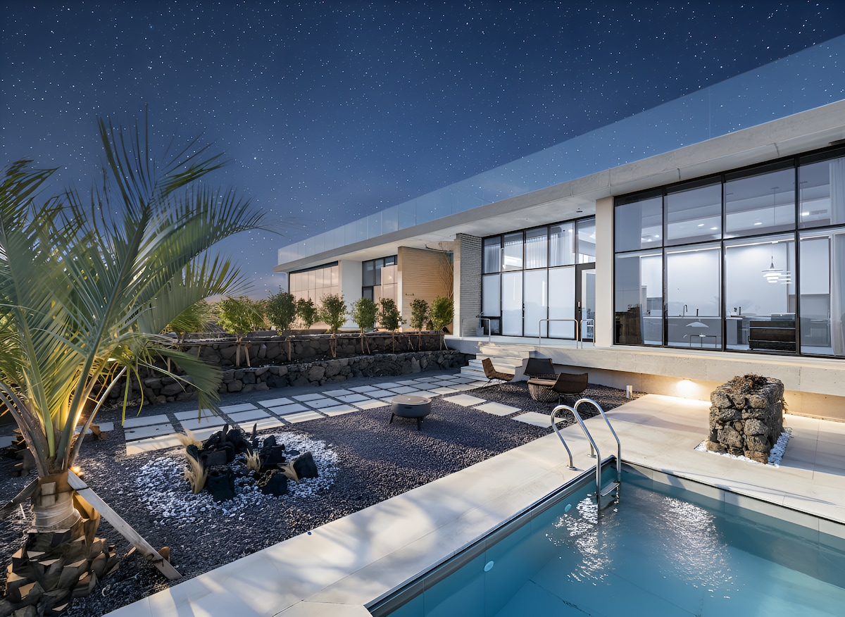 Evento de comemoração da abertura da▶ 4ª obra "Jeju Su:m" ◀ Estamos realizando um evento especial para comemorar a abertura do "Jeju Su:m". As reservas estão sendo feitas com descontos de 25% a 55%. Este evento foi planejado com o apoio de empresas colaboradoras e pode ser encerrado antecipadamente, dependendo da taxa de reserva. 1. Desconto de preço As reservas estão sendo feitas com um desconto de 25% a 55% no valor da estadia. 2. Serviço de carregamento gratuito para carros elétricos Apenas produtos DC Combo (Tesla não disponível). "Basta dar alguns passos. Você pode abraçar o vasto mar." O mar está bem na frente da acomodação~!!! Está localizado em frente ao mar, onde você pode ver o melhor pôr do sol da sua vida. O proprietário construiu e decorou a casa por conta própria. Utilizando os métodos tradicionais de construção de Jeju, foi concluída uma casa de pedra com 7 metros de altura. A água de Yongcheon, onde as antigas mergulhadoras marinhas costumavam tomar banho, onde a água doce e a água do mar se encontram, está localizada. Experimente uma piscina privada de água quente coberta. Você pode usar o espaço interno amplo, juntamente com o espaço ao ar livre em frente ao mar.