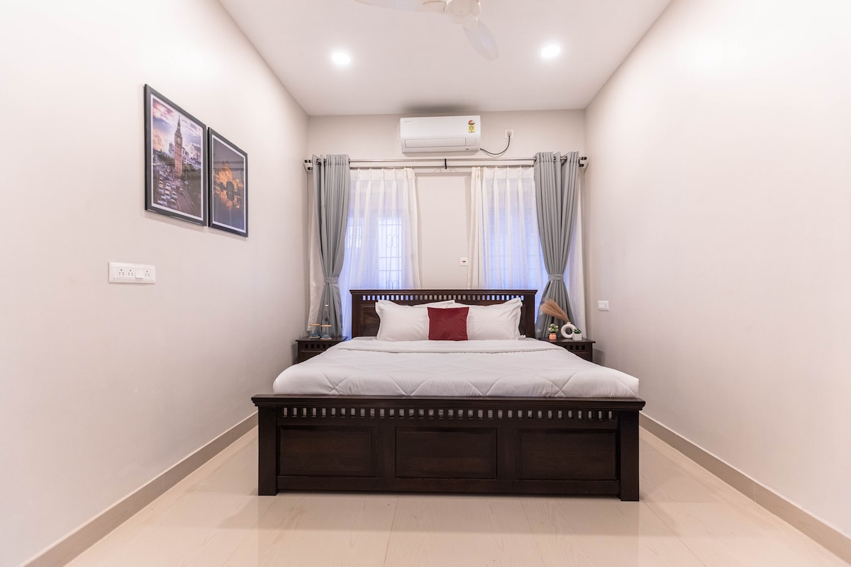 Bem-vindo ao TollyCourtyard, sua fuga tranquila para casa 2BHK na icônica Graham 's Land, Tollygunge. Desfrute de varandas, 2 banheiros modernos, uma cozinha bem equipada, quartos com ar-condicionado e espaços de estar arejados. Nas proximidades: metrô, Tolly Club, campo de golfe, chaiwalas, estúdios de cinema e o Tram Depot. Os principais hospitais, como RSV, B.P. Poddar e M.R. Bangur, estão a uma curta distância a pé. Também servimos uma deliciosa comida caseira. Ideal para famílias, viagens a trabalho ou estadias longas.