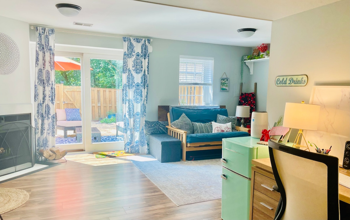 Estúdio acolhedor, espaço de trabalho privativo e jardim