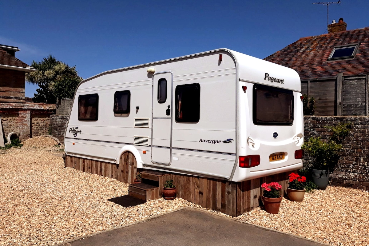 Os hóspedes são bem-vindos para acessar a praia no final do nosso jardim de 200 pés através de um portão. Área de deck perto do portão para uso dos hóspedes com vista para a praia Em frente à caravana, anexada ao nosso bangalô, há um banheiro privativo com vaso sanitário e bacia. Por favor, tragam suas próprias toalhas. Os hóspedes precisam trazer sua própria roupa de cama A caravana é para 2 pessoas Conexão elétrica. Estacionamento ao lado da caravana. Estrada tranquila Tela retrátil para ajudar na privacidade Área de estar ao ar livre ao lado da caravana com vista para o mar