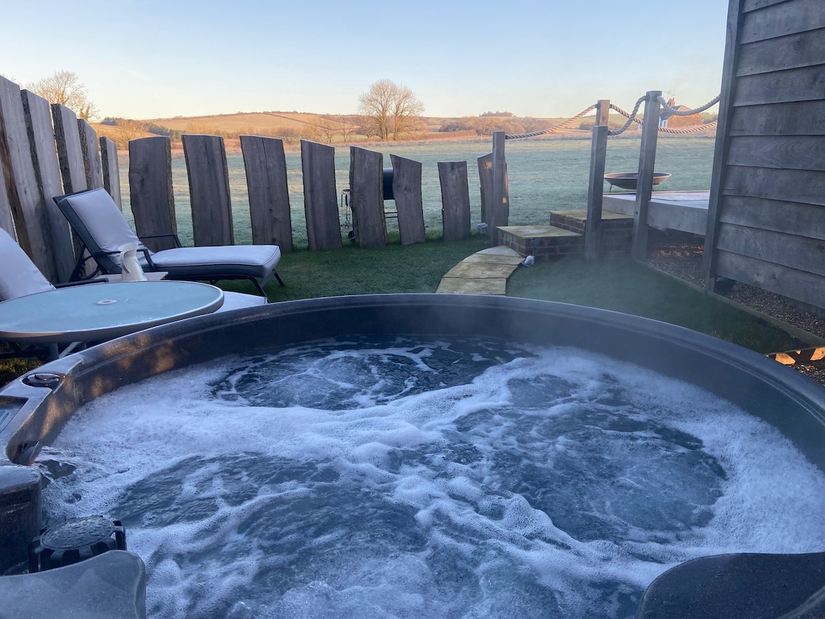 Shepherd's Hide, Hampshire com banheira de hidromassagem a lenha