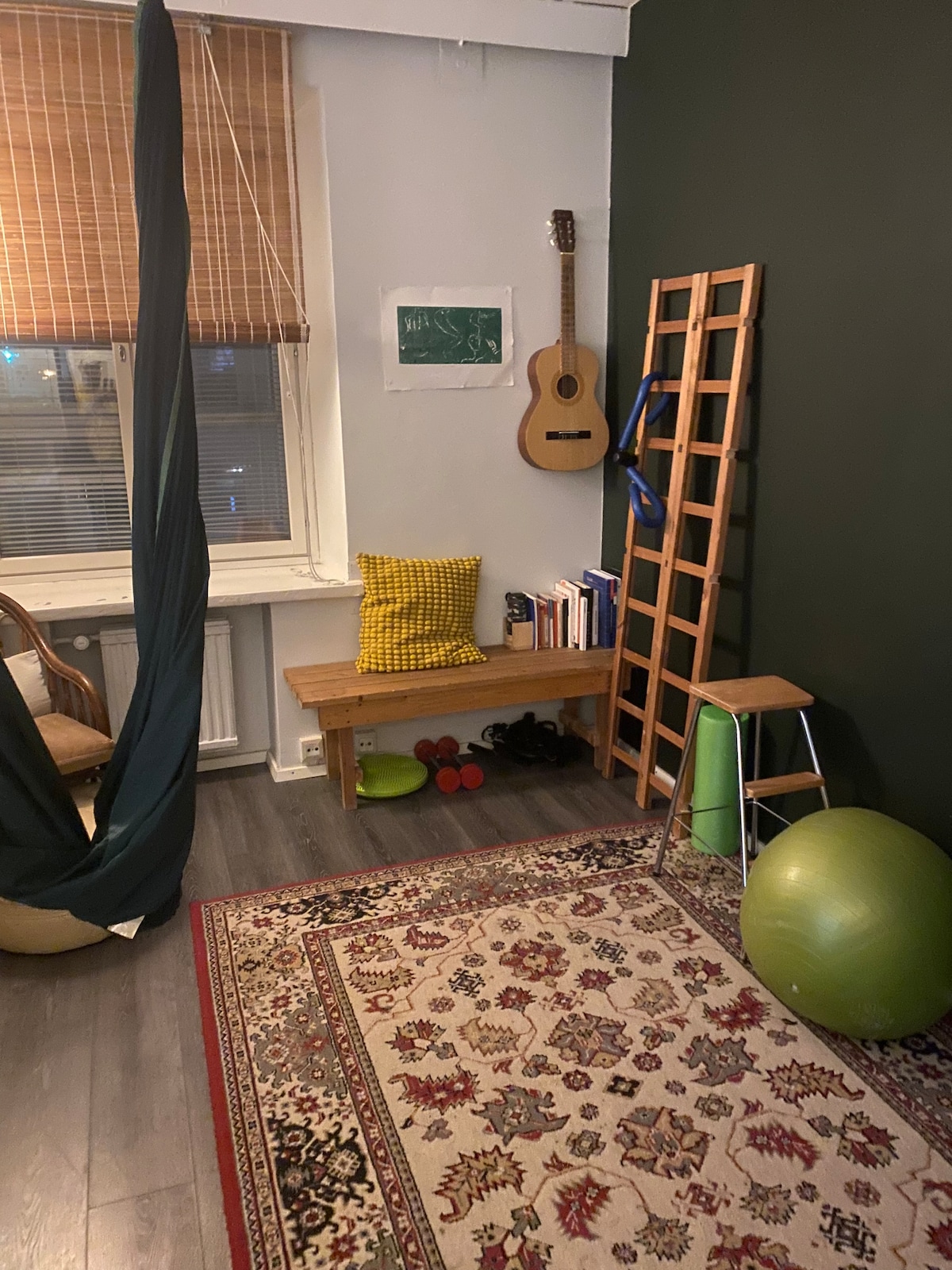 Apartamento de 100m² no último andar com design e arte escandinavos. Três quartos (camas 180cm, 160cm, 90cm), além de sofá e colchão de ar. Vistas deslumbrantes, ideal também para pequenas reuniões. A apenas um quarteirão da Praça do Mercado e do parque. Um lance de escadas para subir. Compartilhamos a casa com nosso cão amigável. Sessões privadas de ioga ou tigela de som disponíveis no local ou nas proximidades — peça detalhes, adequado até mesmo para uma pessoa.