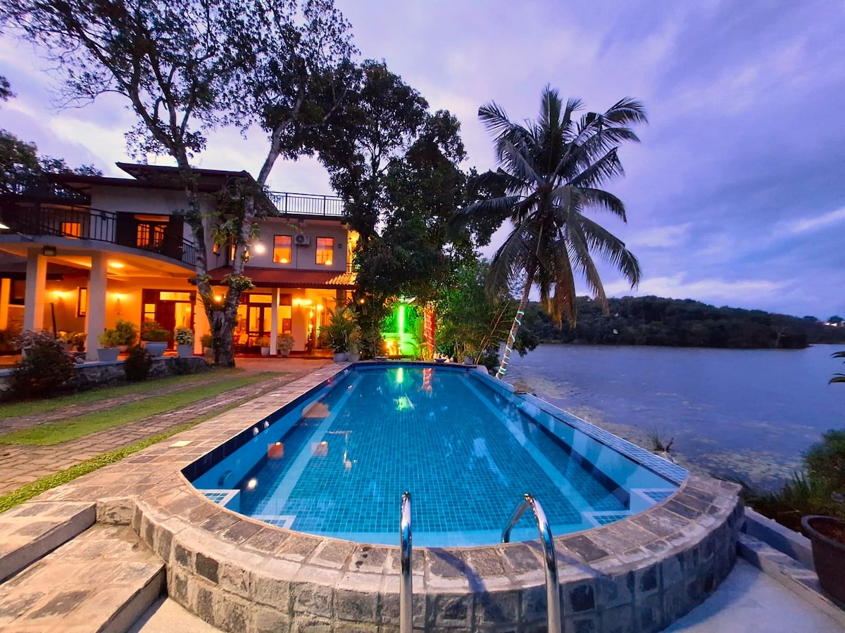 A VILA INTEIRA é só para você/seus hóspedes! FRENTE AO LAGO, Moderno, Espaçoso, Mansão com piscina de borda infinita, chef e equipe da casa, além de café da manhã gratuito. A vila fica a apenas 5 minutos do PealBay Water Park/ Go-Kart Centre e a 40 minutos de carro da SL Capital...O Aeroporto, Galle e algumas praias finas estão a MENOS DE UMA hora de carro Você também pode pedir todas as refeições e entreter outros hóspedes visitantes na vila. Esta vila é ideal para turistas como base ou retornando Expat Sri Lanka em feriados.