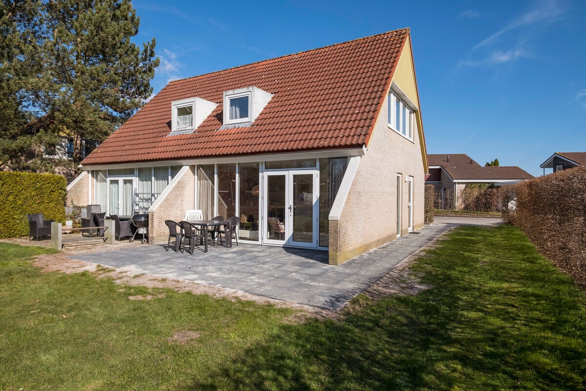 Esta casa de férias isolada e muito bem localizada foi recentemente reformada e decorada com muito carinho, e a área externa foi modernizada. A casa tem uma área de 90 metros quadrados e está localizada em um terreno de 510 metros quadrados, diretamente no canal externo do parque de férias. Graças às cercas que separam a propriedade dos vizinhos, você pode desfrutar de suas férias com muita privacidade no jardim. O terraço virado para o sudoeste oferece espaço suficiente para banhos de sol relaxantes e noites de churrasco divertidas.