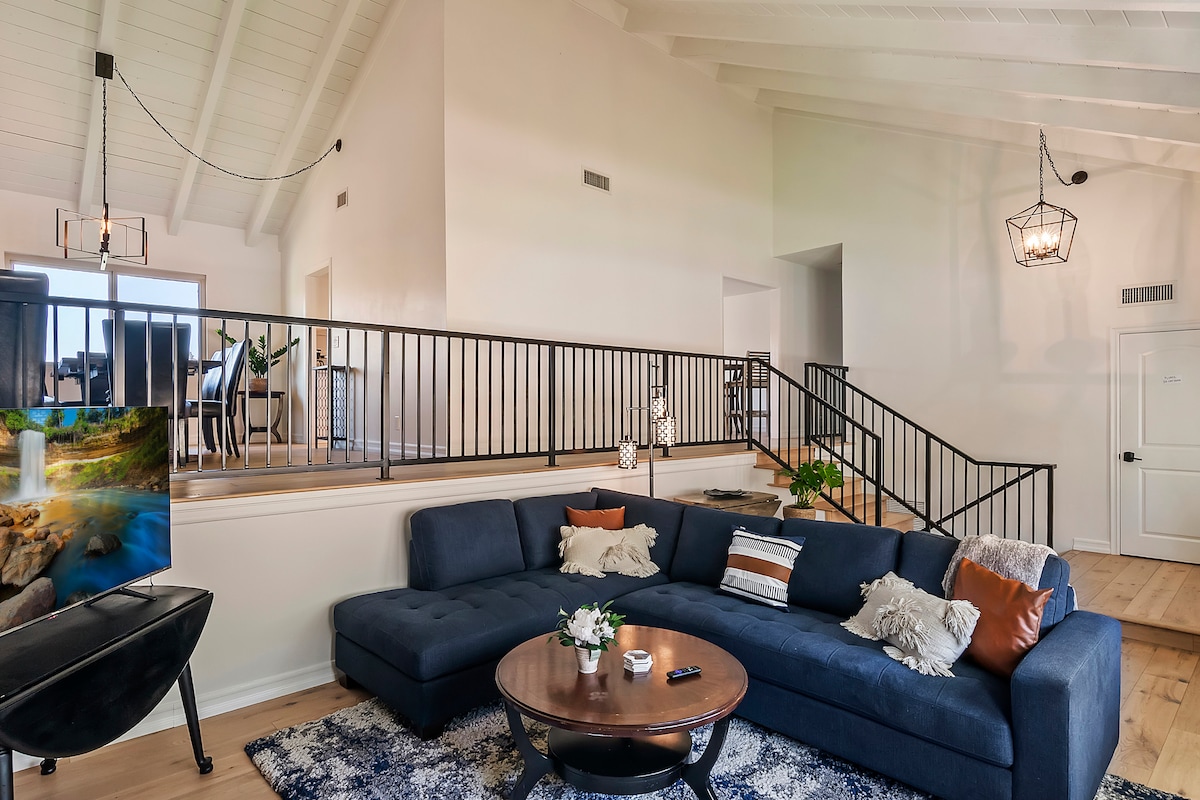 Fuja da vida cotidiana para Malibu Hideaway! Situado nas colinas com vistas deslumbrantes de cânions, montanhas, Lago Sherwood e várias cidades até onde os olhos podem ver! Nossos móveis são feitos à mão com madeira recuperada da ensolarada Califórnia. Nosso colchão híbrido de luxo orgânico é de espuma/mola para ultra conforto. Edredom de penas macias nos meses frios. A suíte dispõe de uma banheira de estilo vintage, toca-discos, lareira artificial, Keurig, micro-ondas, frigobar, TV inteligente de 55 polegadas, mesa/cadeiras, mesa de chá antiga.