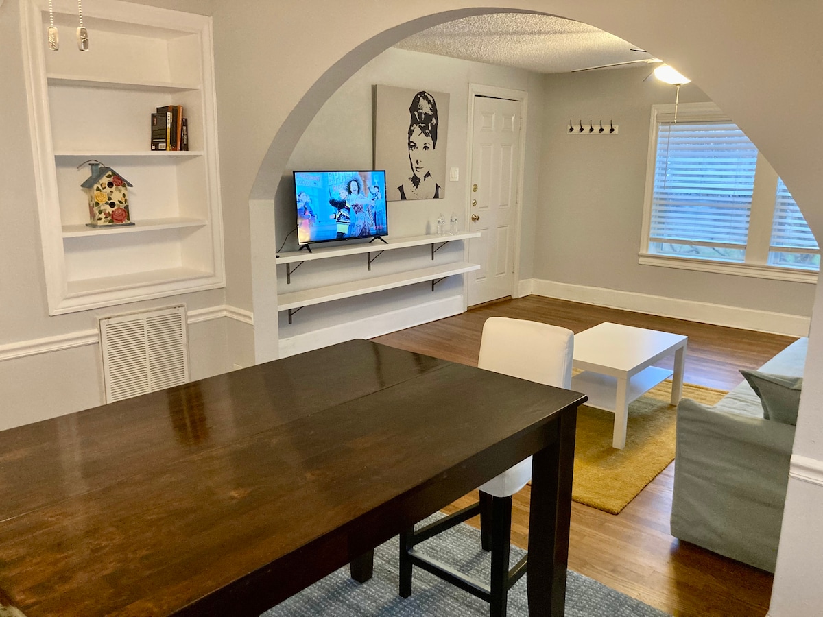ư Aceita animais de estimação! (taxa além do rsrv. total req.) ư Caminhe até cafés, restaurantes e bares. ư Estacionamento coberto seguro. Internet Gigabit e monitor 4K de 32". TV OLED 4K de 77"com Sonos surround. ư Quintal espaçoso e cercado. A 5 minutos de carro do centro da cidade. Bairro residencial tranquilo. ư Level 2 EV chrg. station a 2 quarteirões de distância. Relaxe no meu aconchegante bangalô artesanal de 100 anos localizado no bairro histórico: “Woodland Heights”