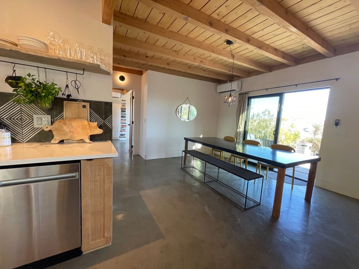 O Rum Runner. Uma versão moderna do clássico proprietário do deserto. Os destaques incluem: - Banheira quente -BBQ Grill -Tesla Charger -Múltiplas fogueiras -Parachute Linens -Sonos Sound System -Endless Desert Views -Múltiplas banheiras de cowboy - Cozinha totalmente equipada - Observação de estrelas ao ar livre - Grande pátio sombreado com refeições ao ar livre - Sala de sol com parede de vidro retrátil de 2,4 x 6,1 m -Mural interno projetado pela artista local Ana Digiallonardo