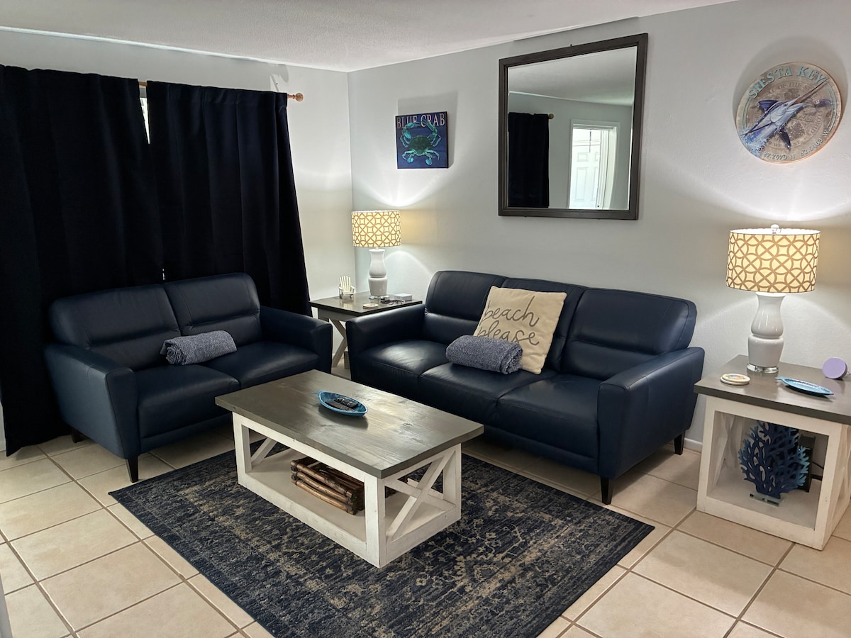 Hospede-se em nosso estúdio estiloso de praia reformado, com uma cama tamanho queen, bem como um sofá-cama completo. Há um frigobar, um cooktop elétrico de dois queimadores, um micro-ondas, uma torradeira, um bule de chá com saquinhos de chá de cortesia, cafeteira com café de cortesia e keurig com copos de Starbucks de cortesia. Wi-Fi gratuito e uma TV de 50 polegadas de frente para a cama. A 2 minutos do aeroporto, a 10 minutos da IMG Academy, a 30 minutos da Ilha Anna Maria e da chave da sesta.