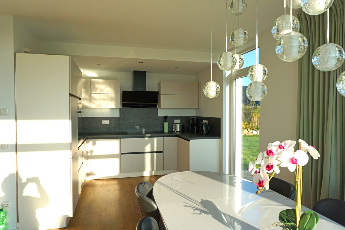Esta casa de férias moderna oferece espaço suficiente para 8 pessoas. Aqui você encontrará 3 quartos, 1 sala de estar, 3 banheiros, 1 cozinha, sauna e lareira. Um dos quartos tem um closet próprio e um banheiro. No andar térreo, a cozinha, a sala de estar e a sala de jantar formam uma unidade espaçosa. Os materiais são modernos e bonitos. Você pode acessar a Internet a qualquer momento através do Wi-Fi. O Bodden está a cerca de 200 m, o mar aberto a 14 km de distância.