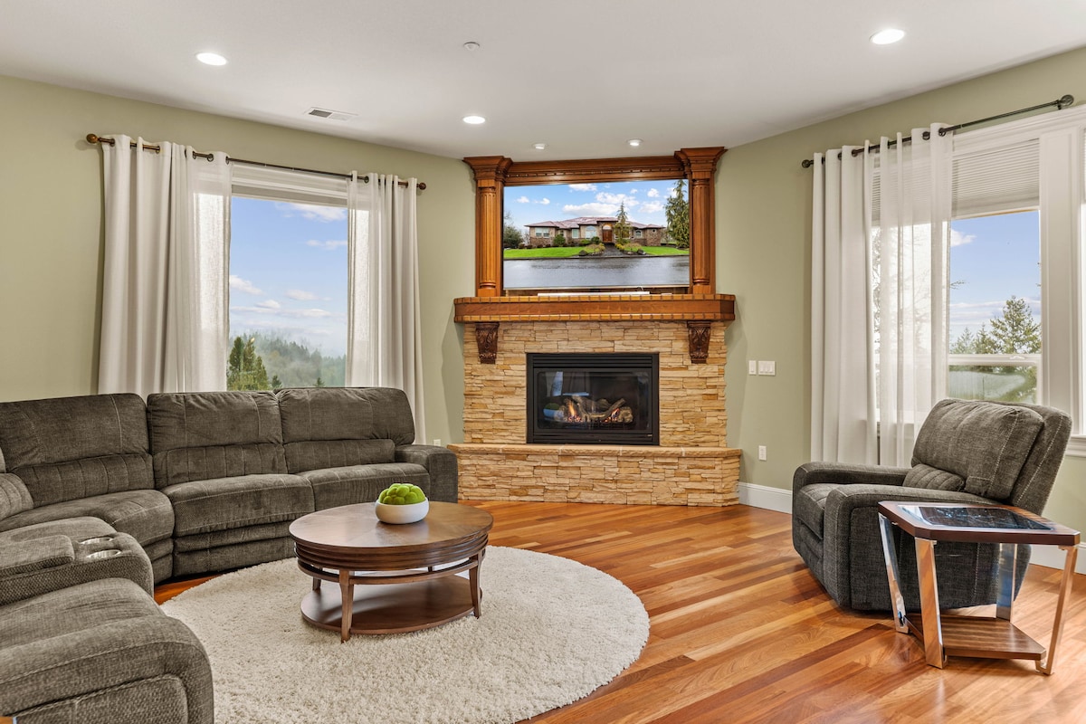 Fuja para a nossa casa de luxo na montanha aninhada em 20 acres arborizados com vida selvagem. Desfrute de 185 metros quadrados em um ambiente isolado com vista completa para o Monte Hood. Pátio privativo coberto de 2500 pés quadrados com churrasqueira. Cozinha e sala de jantar que flui através de uma parede de janela móvel para uma vida interior/exterior. Sala de mídia com assentos reclináveis elétricos com assentos de teatro escalonados. Lavanderia. A 10 minutos de restaurantes, entretenimento ou compras. A 45 minutos do Monte Recreação no Monte Hood (esqui, caminhadas, caiaque). Sofá-cama na sala de mídia. Beliche disponível