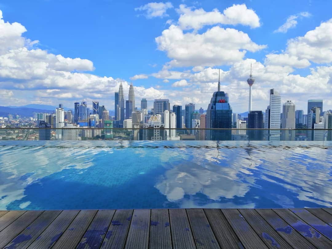 Piscina de borda infinita no Royal KLCC | LRT | Passeio no shopping
