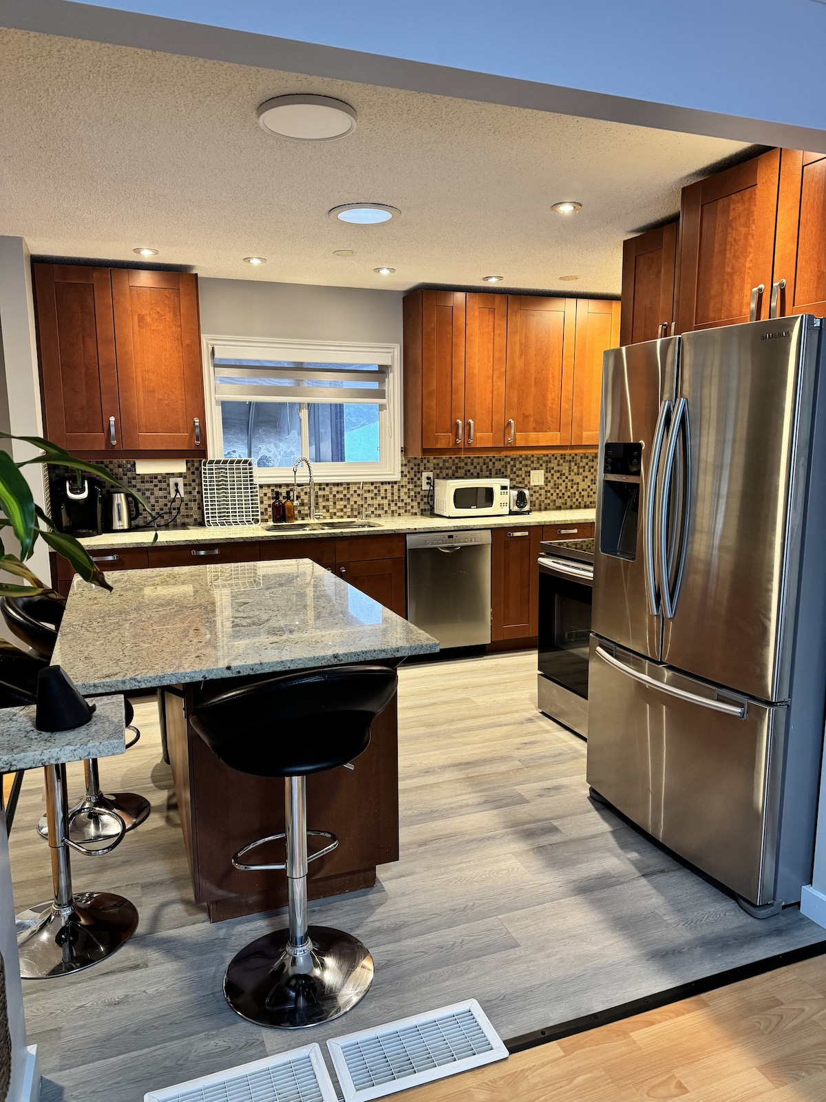 Bem-vindo à nossa casa de 5 quartos RECENTEMENTE REFORMADA, 2 banheiros, a 2 minutos de carro ou a 5 minutos a pé do West Edmonton Mall. A poucos minutos das famosas atrações da cidade e com fácil acesso às rodovias de Edmonton. Este é o local perfeito para quem quer uma escapada de casa. Ar condicionado para o verão Estacionamento privativo na entrada da residência Auto check-in/out com fechadura inteligente Desfrute de serviços de streaming e cabo Wi-Fi de alta velocidade Limpeza e higienização profissionais