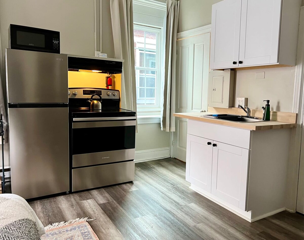 Modern Midtown Retreat: Descubra o nosso acolhedor apartamento de 1 cama, a base perfeita para explorar Hershey e Harrisburg. Localizado em Midtown, o bairro mais legal de Harrisburg, você está a uma curta caminhada de distância do centro da cidade, do Capitólio do Estado, de cervejarias e muito mais. Situado no edifício histórico “Carpets and Draperies”, originalmente Gerber 's Department Store (1922), esta unidade totalmente restaurada oferece confortos modernos, incluindo estacionamento gratuito fora da rua, uma cozinha totalmente abastecida e lavanderia na unidade.