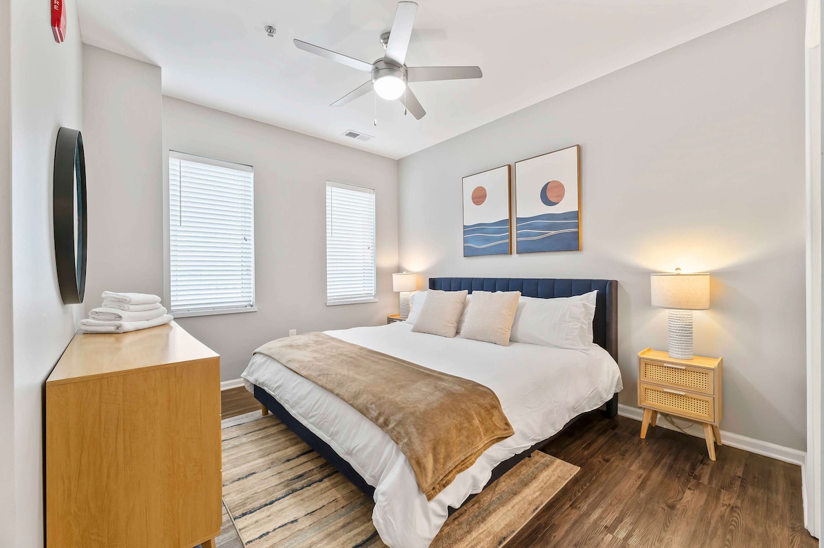 Bem-vindo ao seu elegante retiro urbano de 2 camas e 2 banheiros no coração de Kansas City. Este charmoso Airbnb combina conforto moderno com conveniência, com interiores iluminados, mobiliário contemporâneo e decoração de bom gosto. Desfrute de uma cozinha totalmente equipada com eletrodomésticos elegantes e relaxe na varanda privativa com café ou vinho enquanto aprecia a vista para a cidade. Academia + estacionamento incluídos. Perfeito para profissionais e realocações, projetado para conforto em estadias de longa duração.