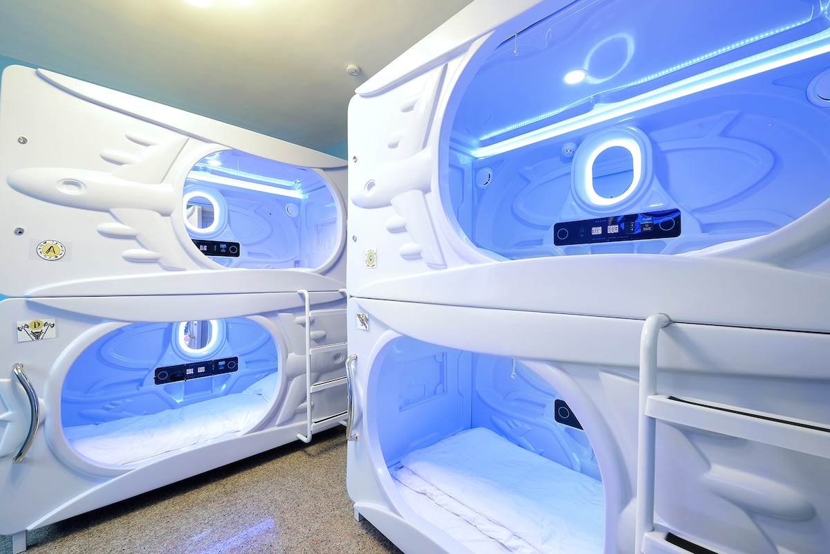(W1) 近花蓮車站,女性太空艙床位,房間內共六艙,有衛浴設備及冷氣